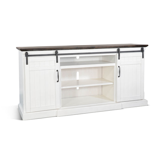 Stone - 93" TV Stand - Antiqued Ivory / Weathered Gray