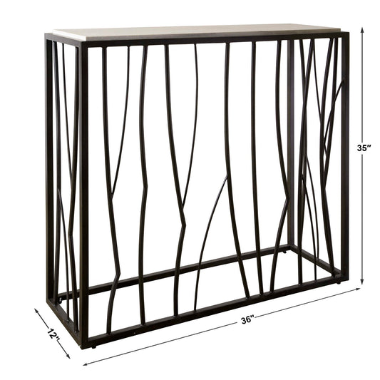 Reed - Travertine Console Table - Black & Light Brown
