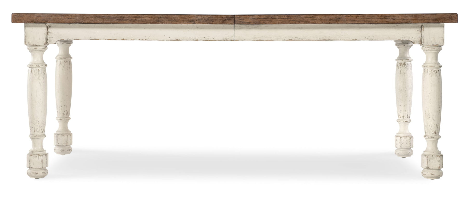 Combining the deep, dark Molasses finish over Cathedral Oak Veneers on the base and the warm finish in a soft tone on the top, the Americana Dining Table harkens back to a simpler, more genteel time. Featuring a Solid-Wood Edge top, it has chunky turned legs. What’s more, this table can be a real crowd-pleaser. With the 22-inch leaf in place, it extends to 102 inches long, accommodating up to 4 coordinating benches and two armchairs or up to 8 coordinating arm or side chairs. Without the leaf, it accommodates up to 6 coordinating arm or side chairs and up to two coordinating benches and two armchairs.
