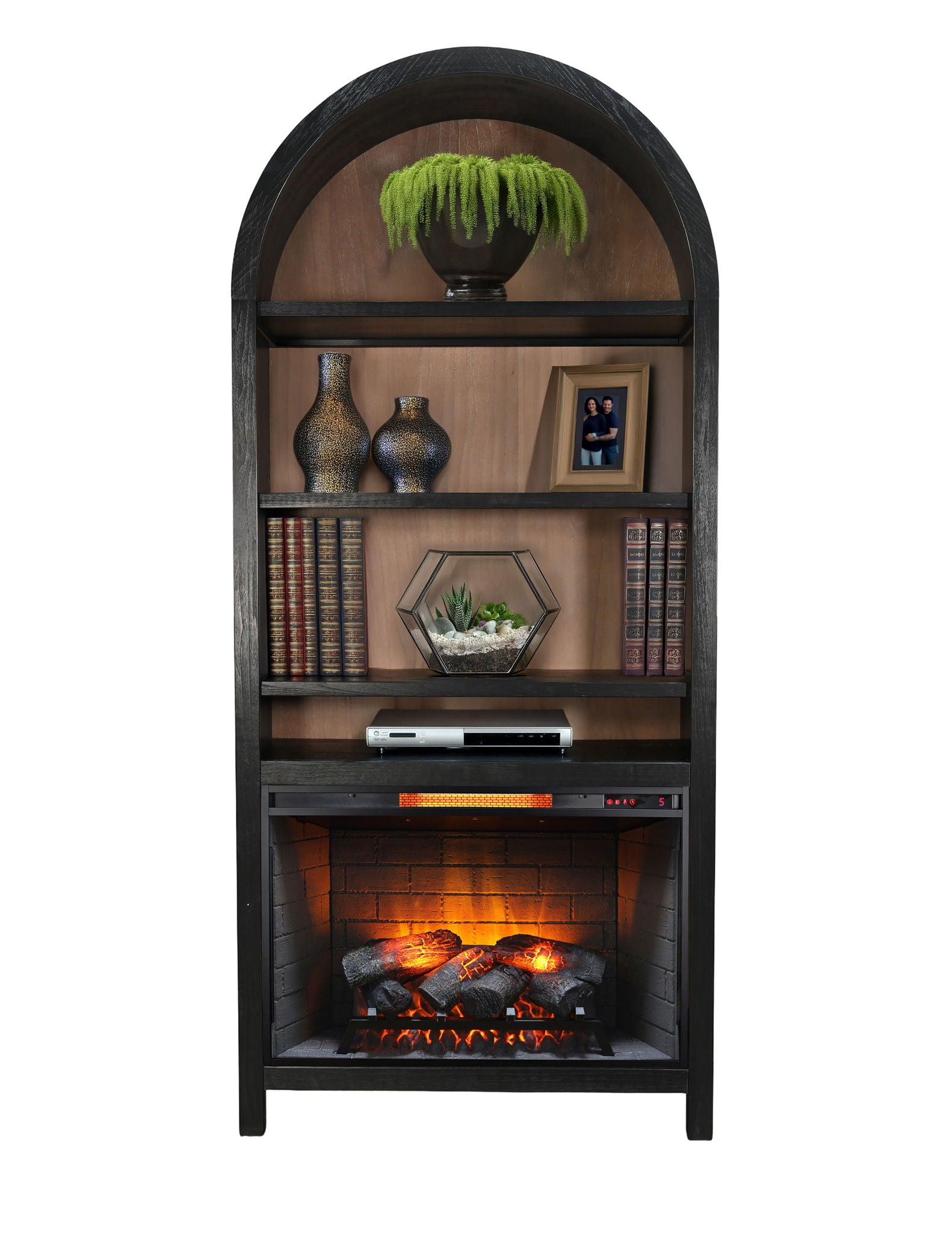 Arched Bookcase With Electric Fireplace - Umbra / Oak Grove