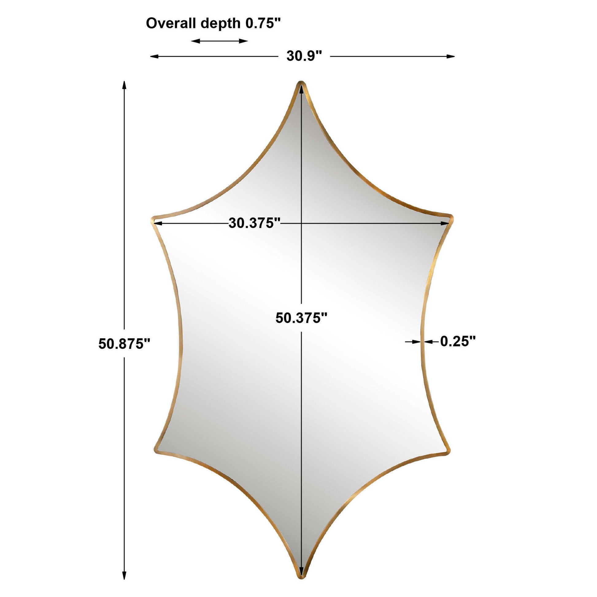 Perfect For An Entryway Or A Stunning Over The Sofa Display, This Transitional Mirror Features A Uniquely Shaped Stainless Steel Frame With Gracefully Curved Points Finished In Classic Brushed Gold. May Be Hung Horizontal Or Vertical.