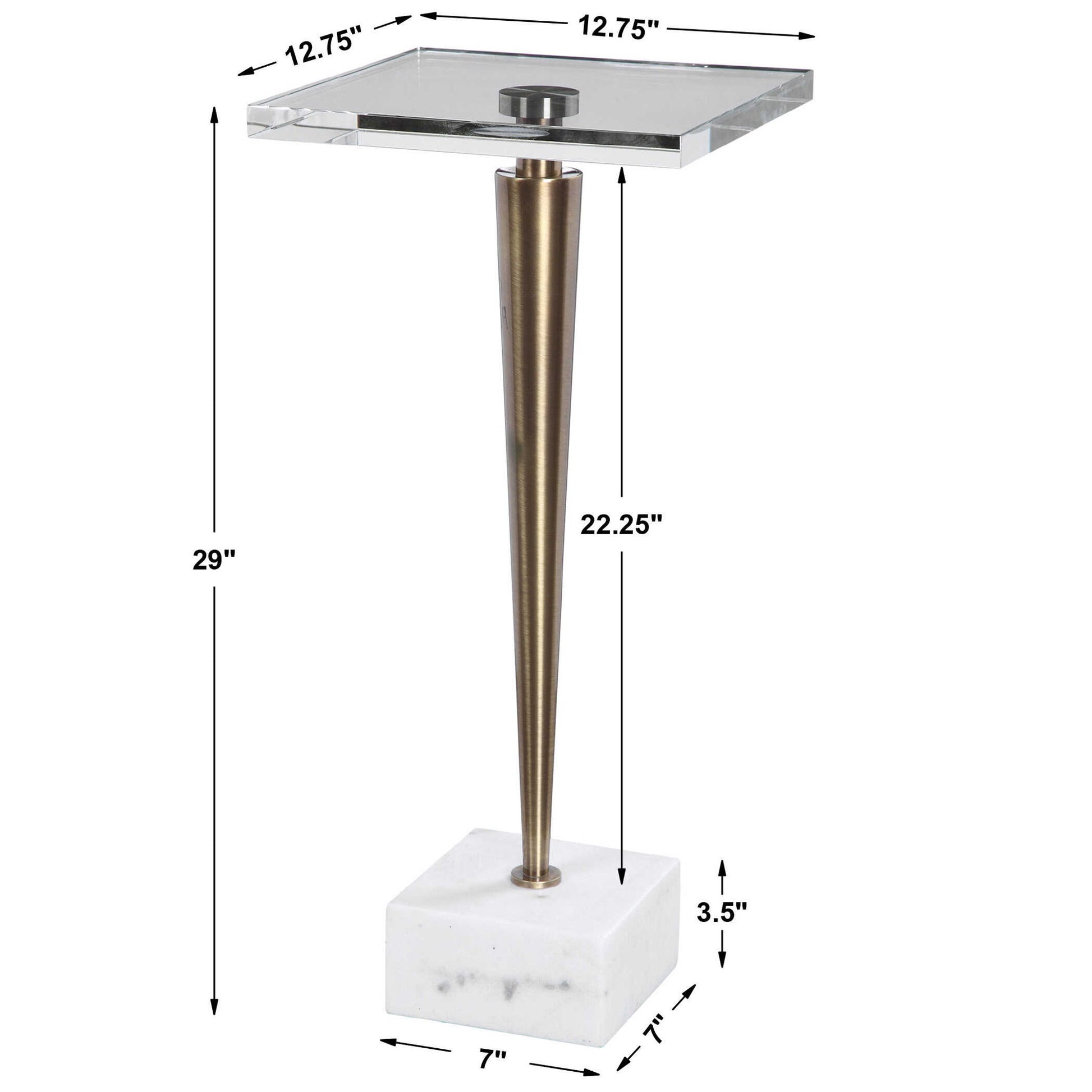 Showcasing Style And Sophistication, This Drink Table Features A Thick Crystal Top On A Tapered Stainless Steel Base Plated In Brushed Brass, Resting On A Natural White Marble Foot.