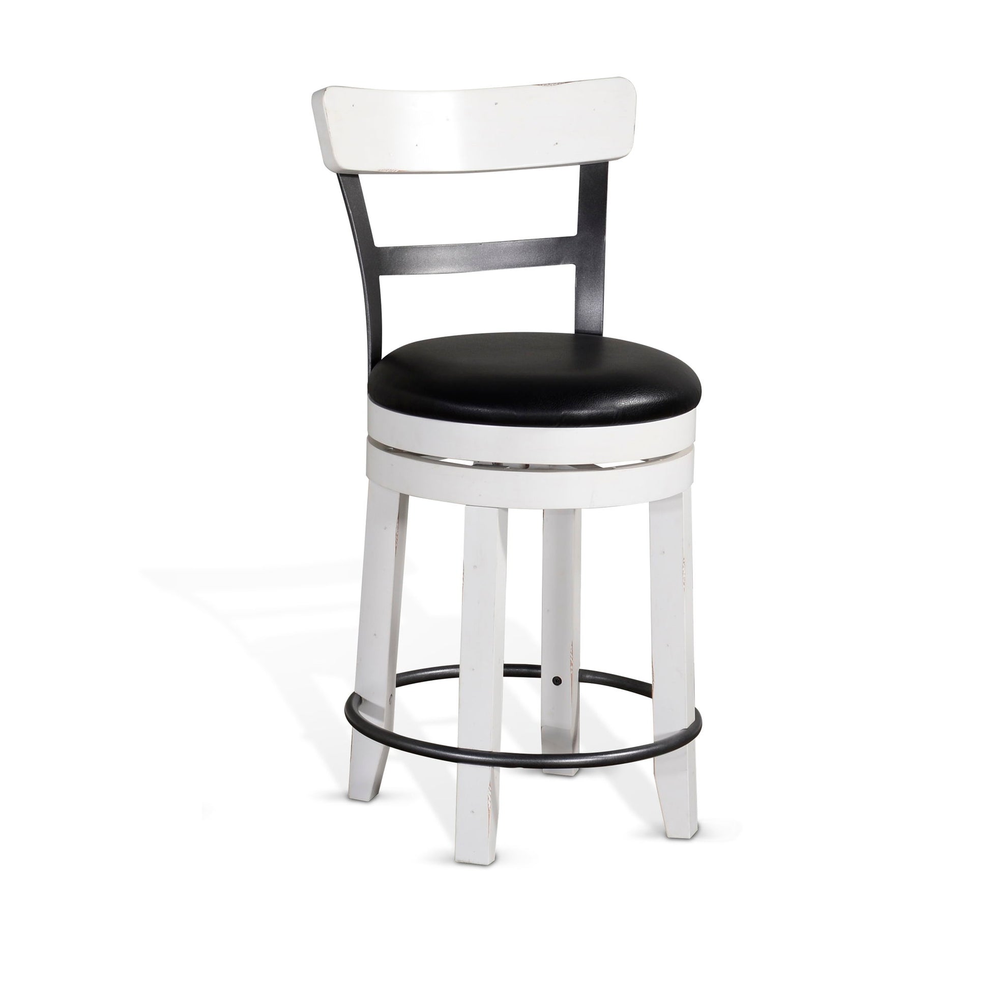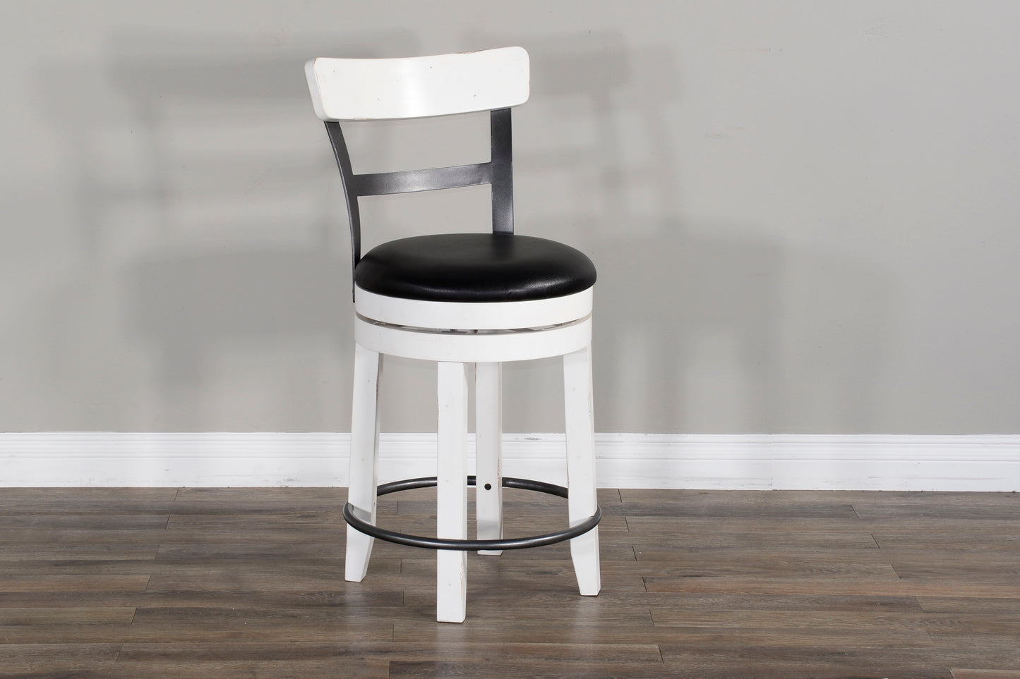 Carriage House - Counter Barstool With Back & Swivel, Cushion Seat (Set of 2) - Cottage White / Europen Dark