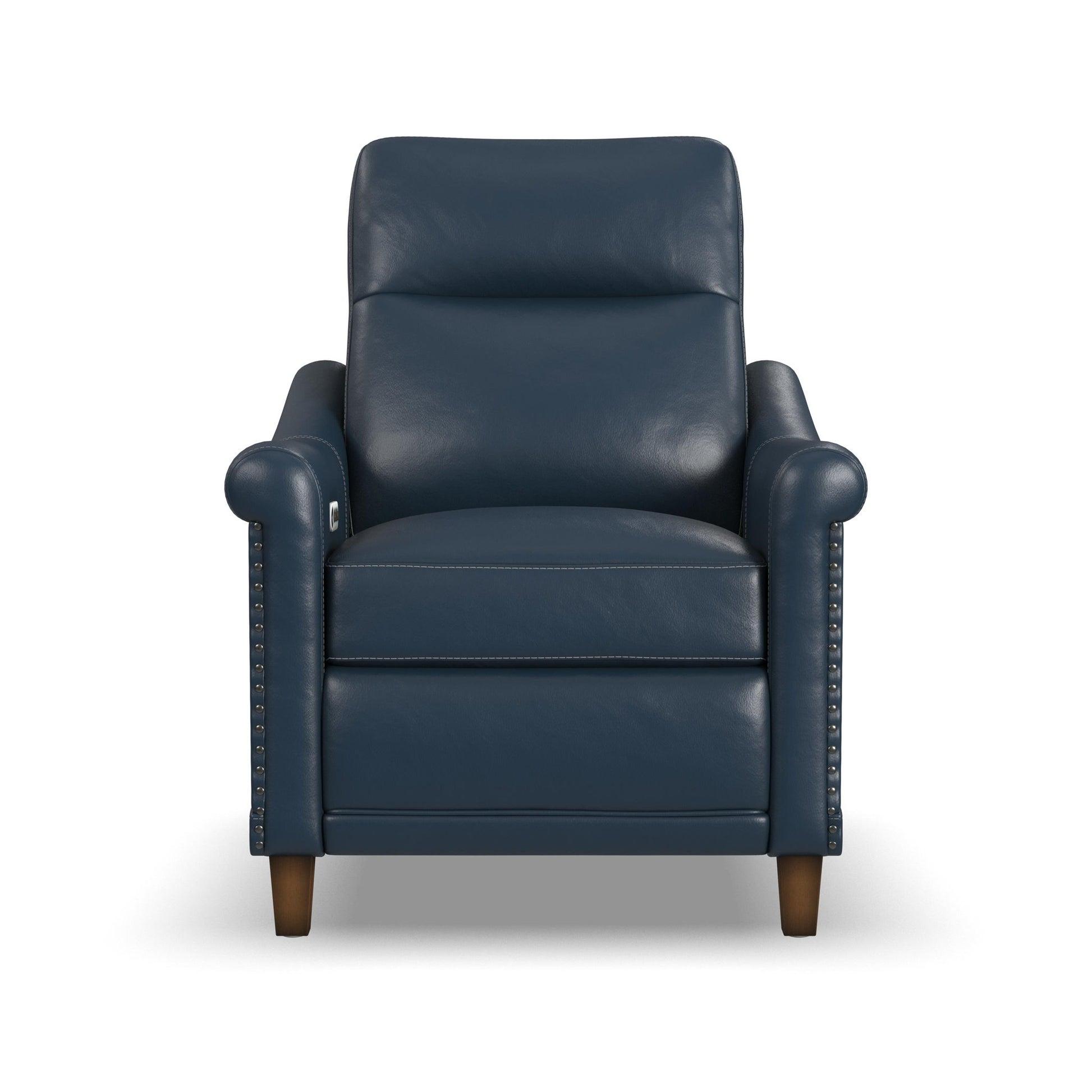 Timeless, traditional details meet today’s modern comfort capabilities with the Elizabeth power recliner. Inspired by vintage stationary furniture, this recliner features sloped, petite roll arms, curved side base rails and decorative nailhead trim reminiscent of a bygone era. A high-divide back, extended footrest and powered headrest provide support for complete relaxation. Upholstered in a buttery-soft and durable leather, the Elizabeth power recliner exudes elegance and luxury.