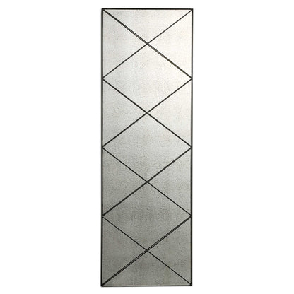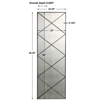 Stylish, Antiqued Mirror Accented With A Thin Metal Frame And Welded Diagonal Metal Strips Finished In A Dark Bronze. May Be Hung Horizontal Or Vertical.