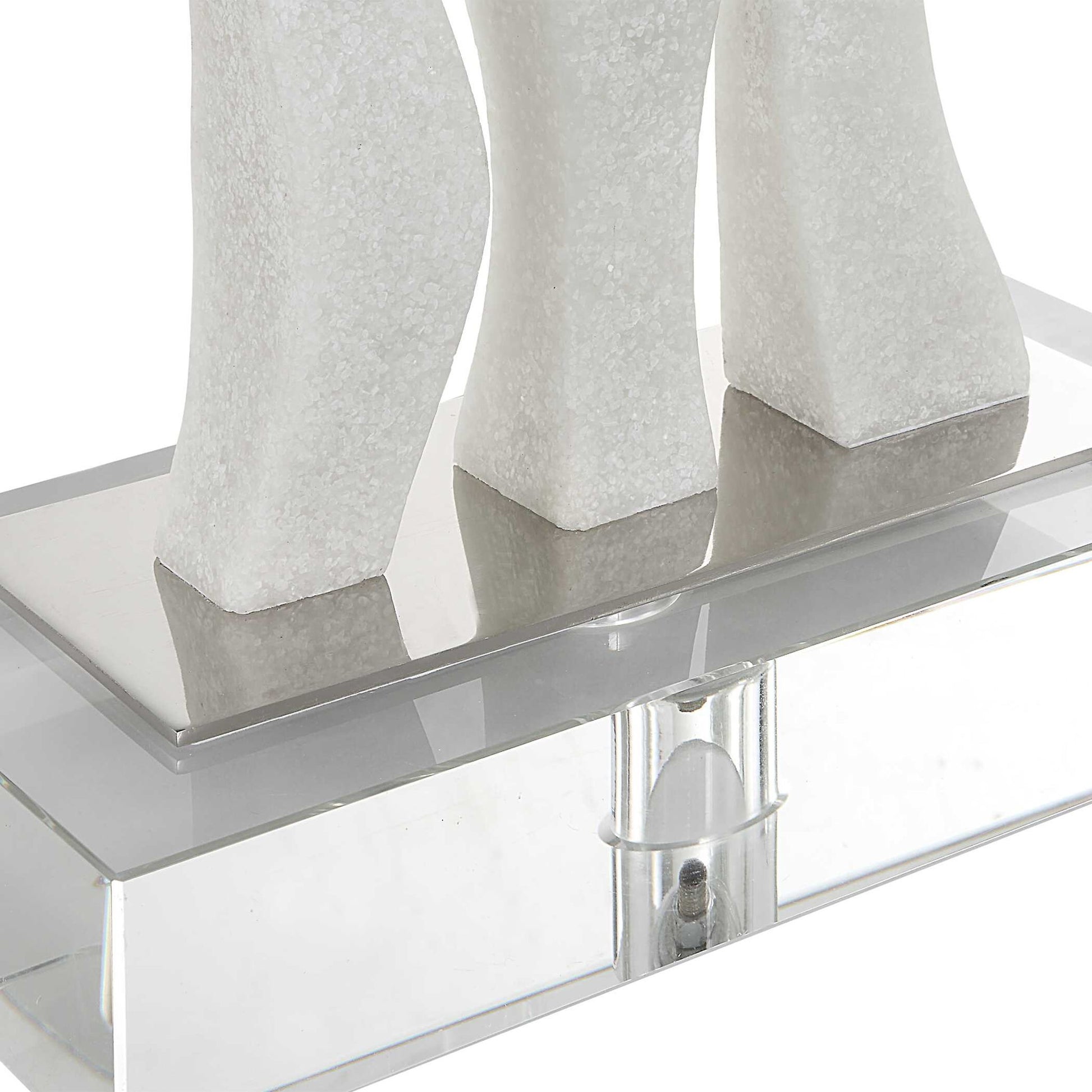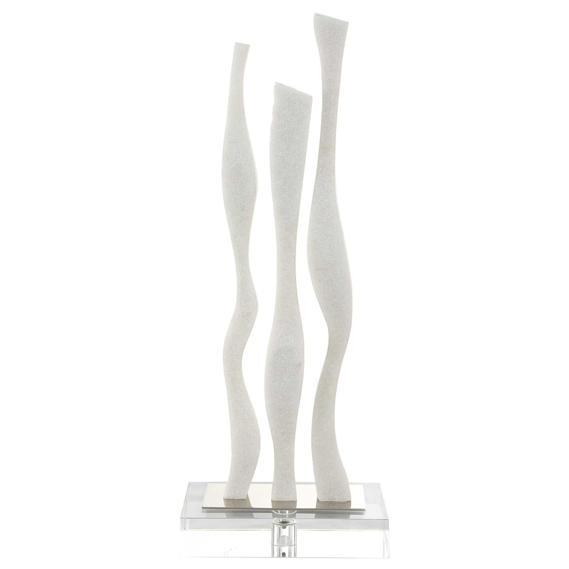 Inspired By Striking Works Of Modern Art, This Abstract Sculpture Is Crafted From Ivory Man-made Stone That Accurately Replicates The Look Of Thassos Marble And Is Accented By An Elegant Crystal Foot And Metal Accent.