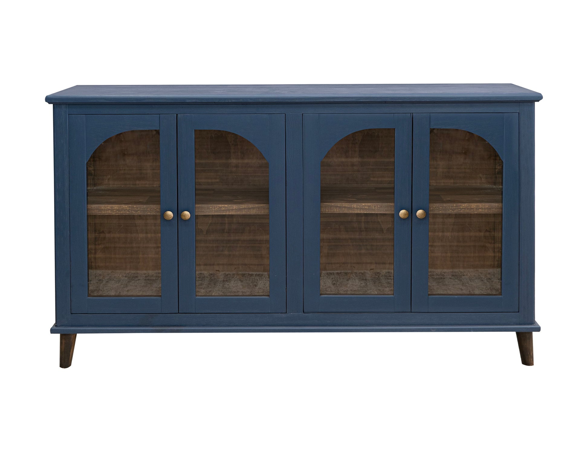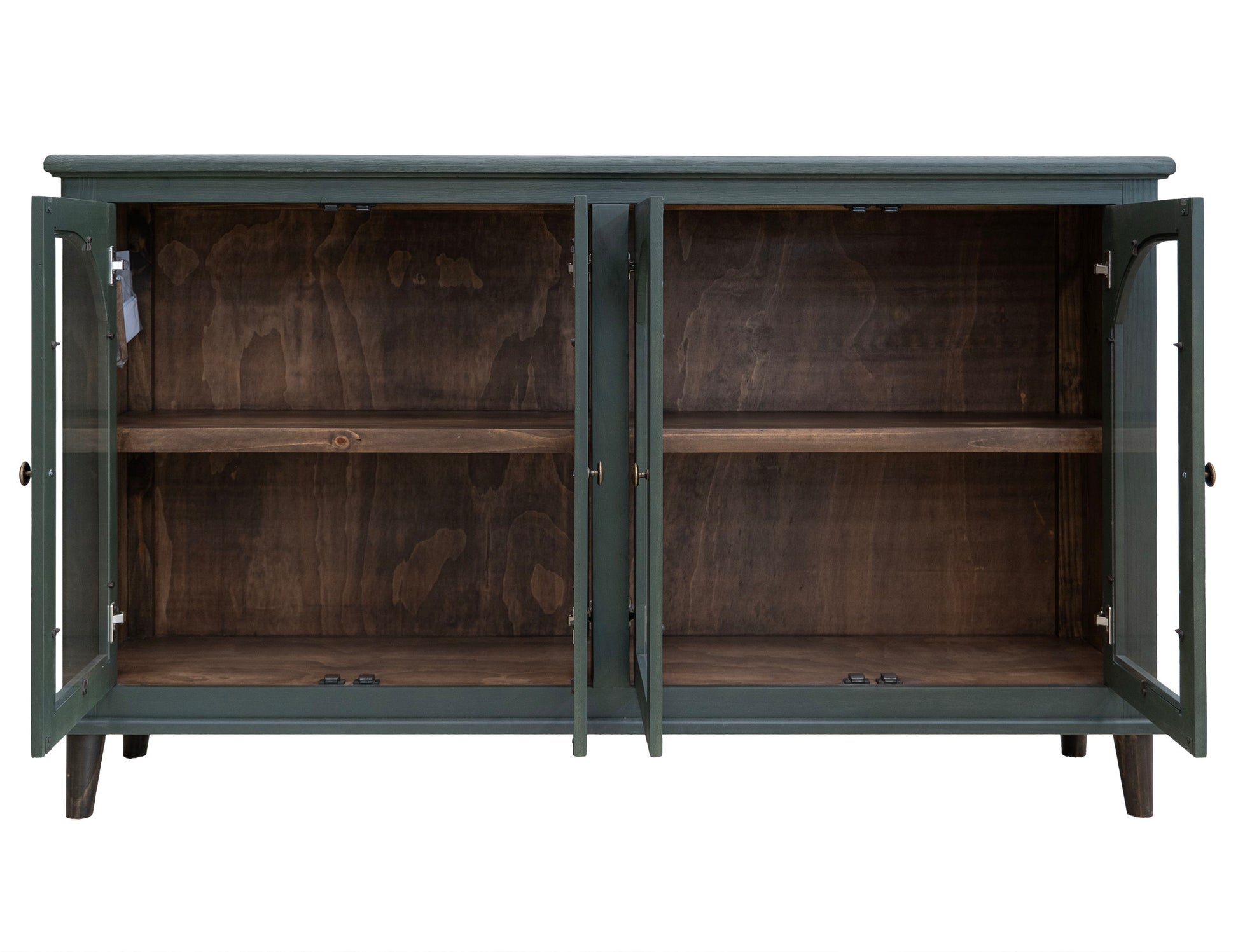 4 Glass Door Console. The Genova consoles crafted from lightly distressed pine and okume wood provide a contemporary twist on mid-century aesthetics, with vibrant colors perfect for complementing monochromatic spaces or adding a splash of vividness. They are guaranteed to be showstoppers in any room.