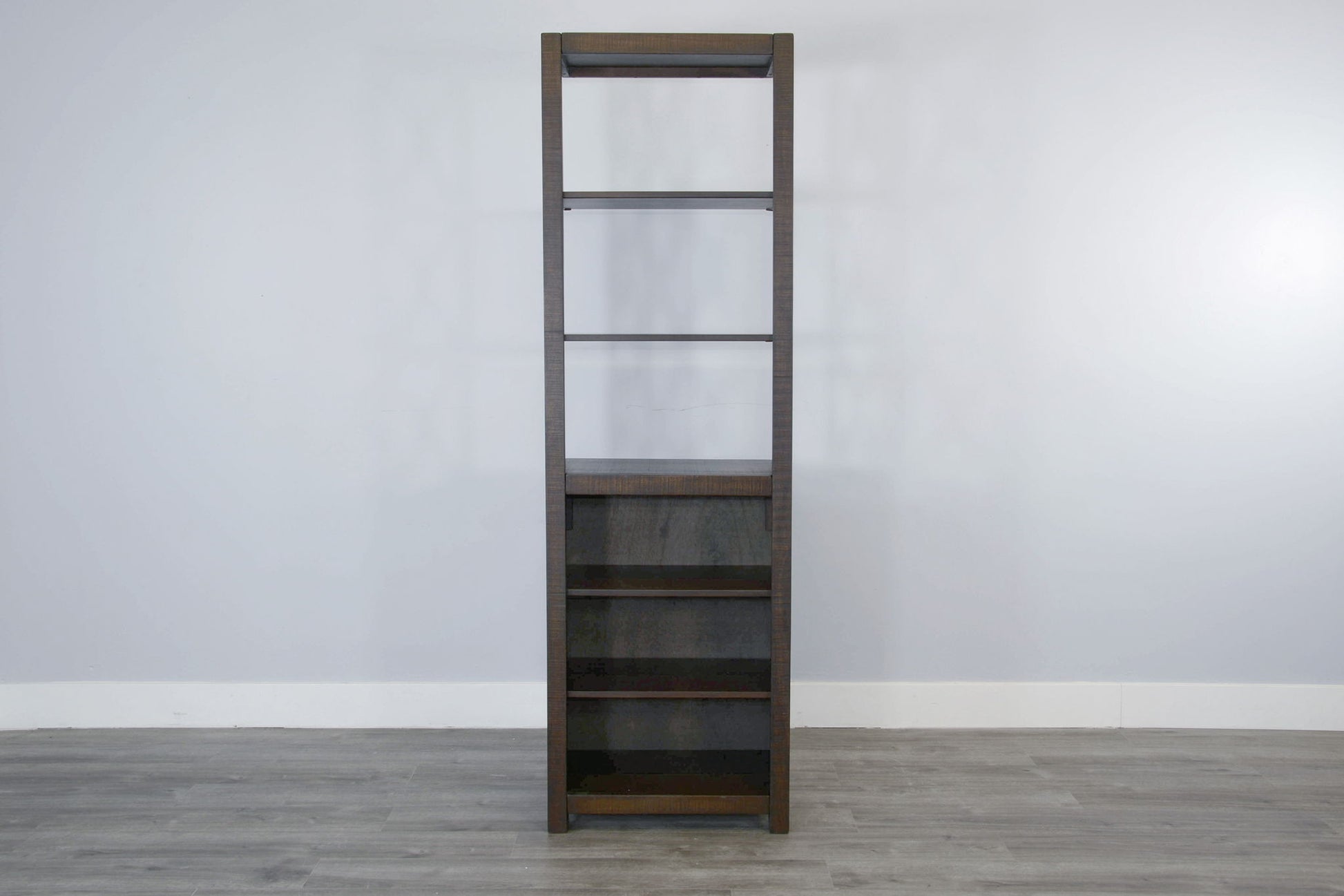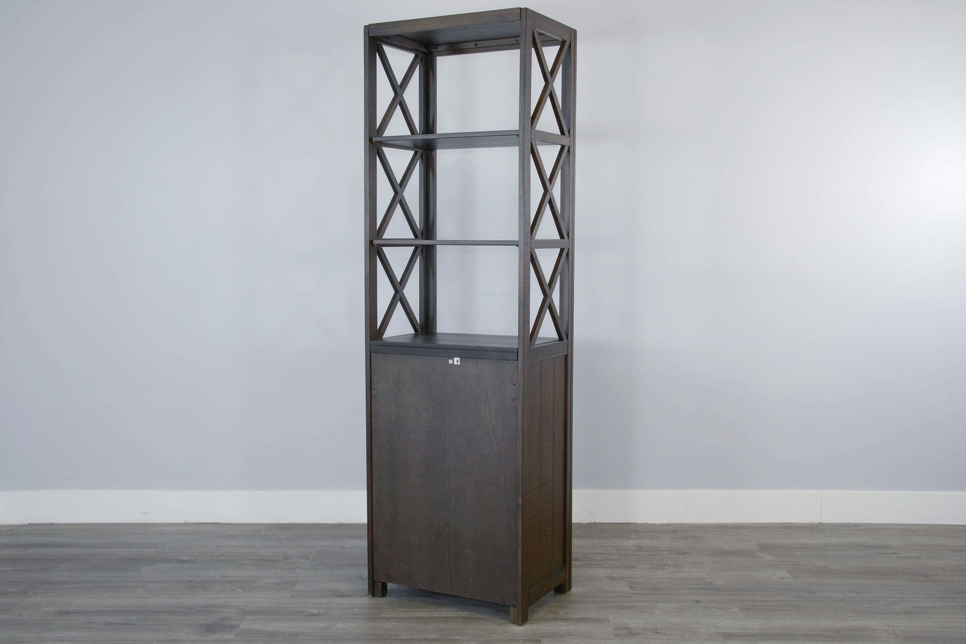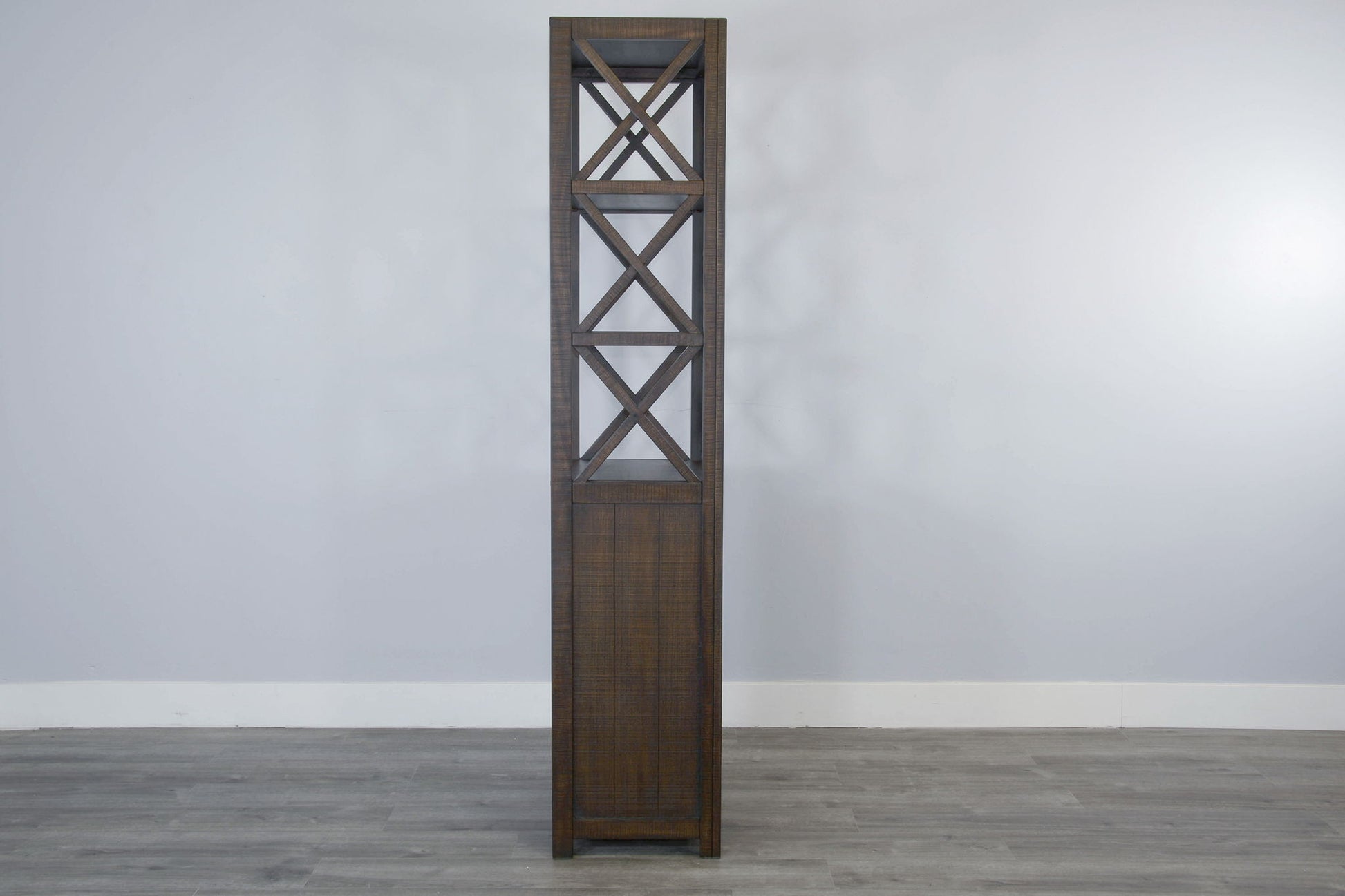 Elevate your space with this stylish and functional tall bookshelf, featuring a rustic design with open X-shaped sides. The multiple shelves provide ample storage for books, decor, or collectibles, while the sturdy wooden construction ensures lasting durability. Its compact footprint makes it perfect for living rooms, home offices, or smaller spaces needing organization. This piece blends rustic charm with modern functionality to enhance any room.