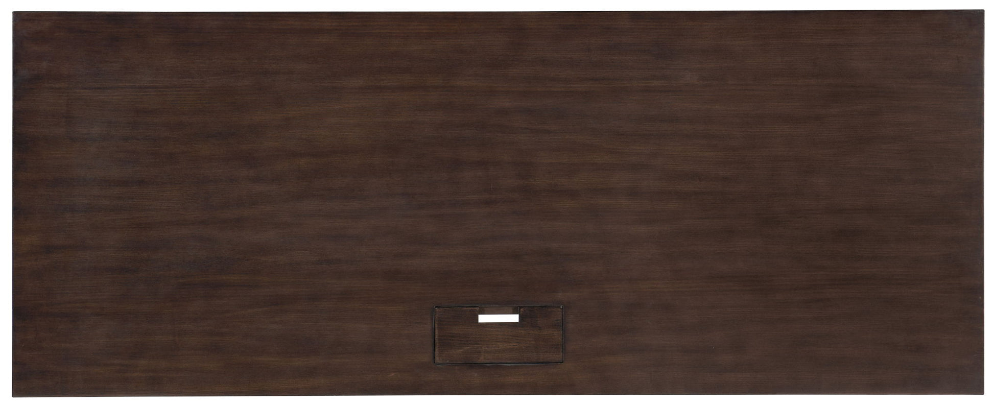 Add stylish work-from-home bandwidth to any space with the House Blend 60in Writing Desk with a sleek combination of the Dark Roast finish over Quartered Ash Veneers and silver metal trim. The bold silhouette is finished on all sides and features a power supply in the top for seamless electronics hook ups.