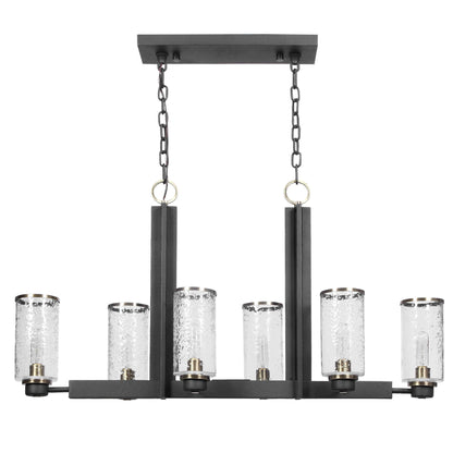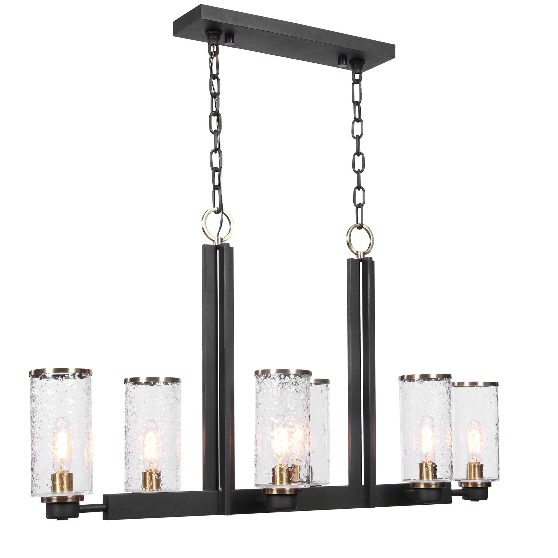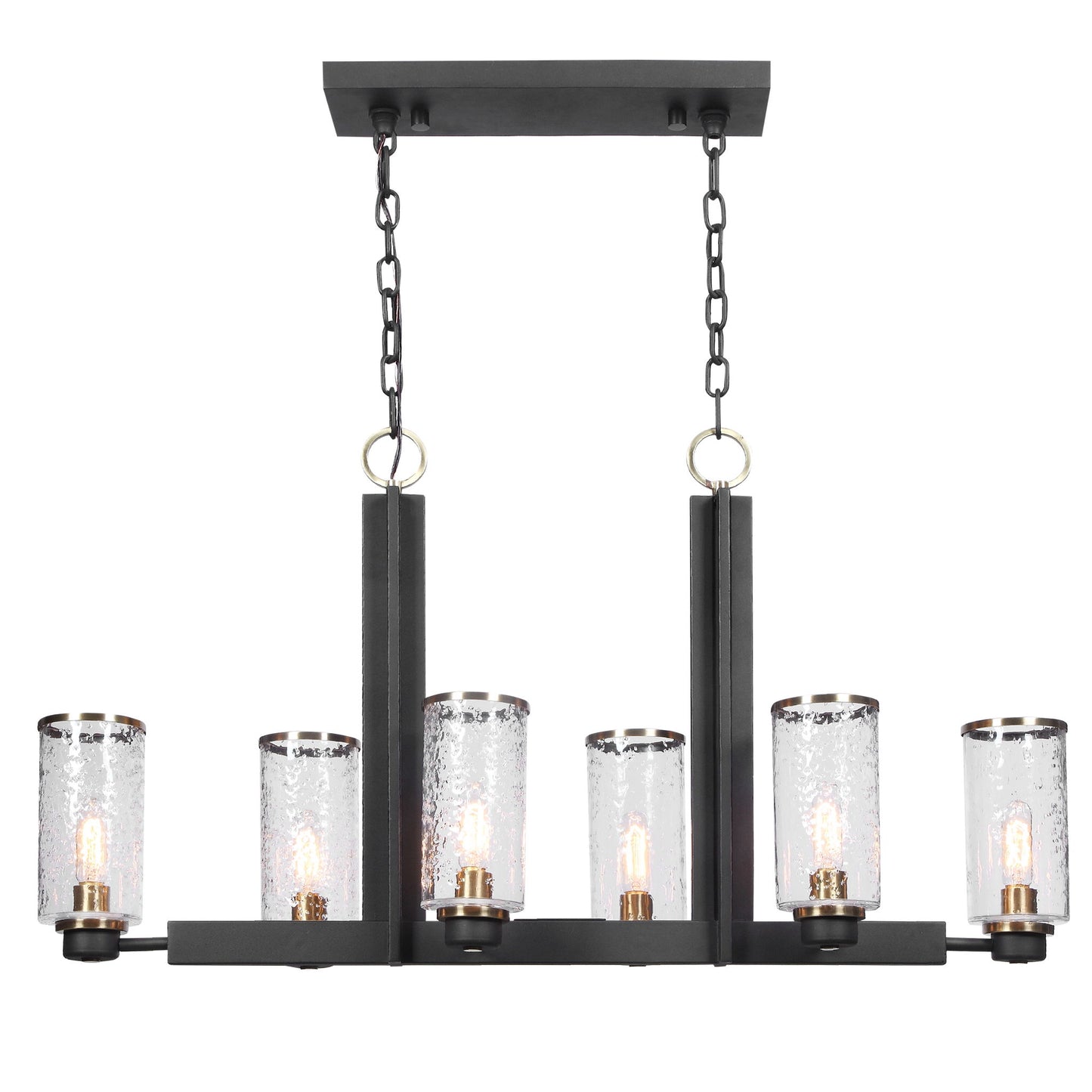 Refined Industrial With Clean Lines On Our 6 Lt. Island Features A Sanded Black Finish On The I-beam Style Frame With Refined Antique Brass Accents And Clear Meteor Shower Glass Shades. 6-60 Watt Max Edison Sockets. Bulbs Not Included. Supplied With 20' Wire And 7' Chain For Adjustable Installation.