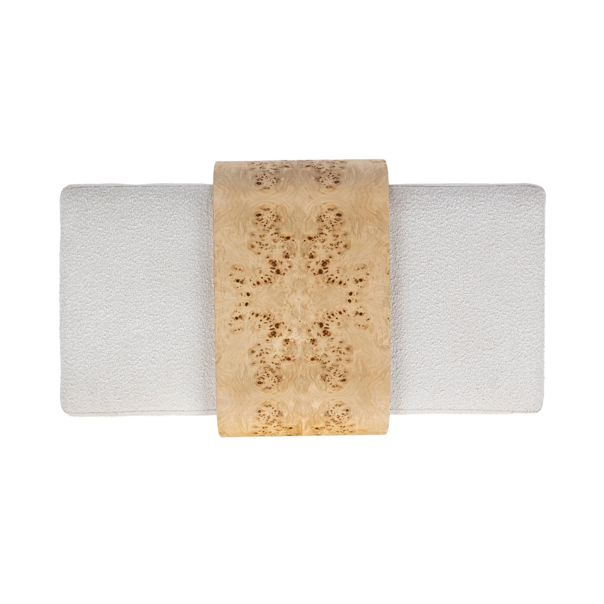Designed with an artful approach to functionality, this Kenan Ottoman Coffee Table is both tactile and timeless. The plush creamy ivory seat is elevated by a beautifully grained wood accent, making it a dynamic fusion of texture, comfort, and sculptural beauty.