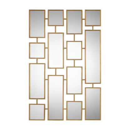 Craftily Connected Forged Iron Rectangles Finished In A Lightly Antiqued Gold Leaf. May Be Hung Horizontal Or Vertical.