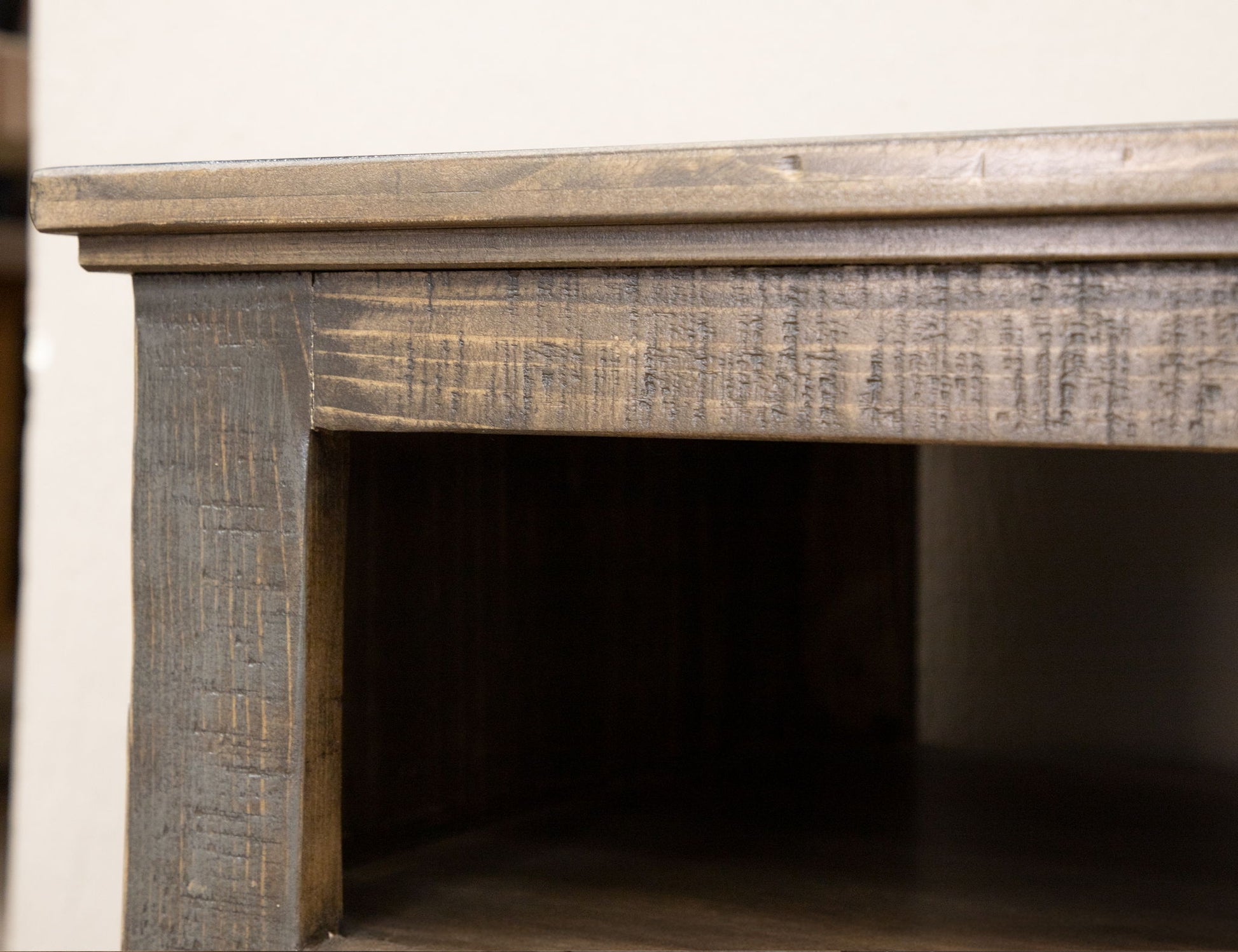 2 Drawer, 4 Doors 76" TV Stand. The Loft Brown Collection is constructed using pine wood that has been hand-stained and distressed, complemented by hand-forged iron hardware. This beautiful collection features a wide range of high and low finish colors, making it a striking addition to any room décor you choose to design.