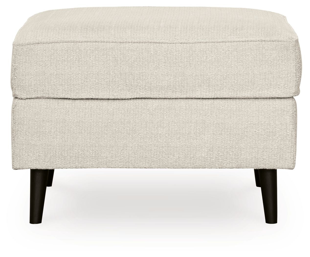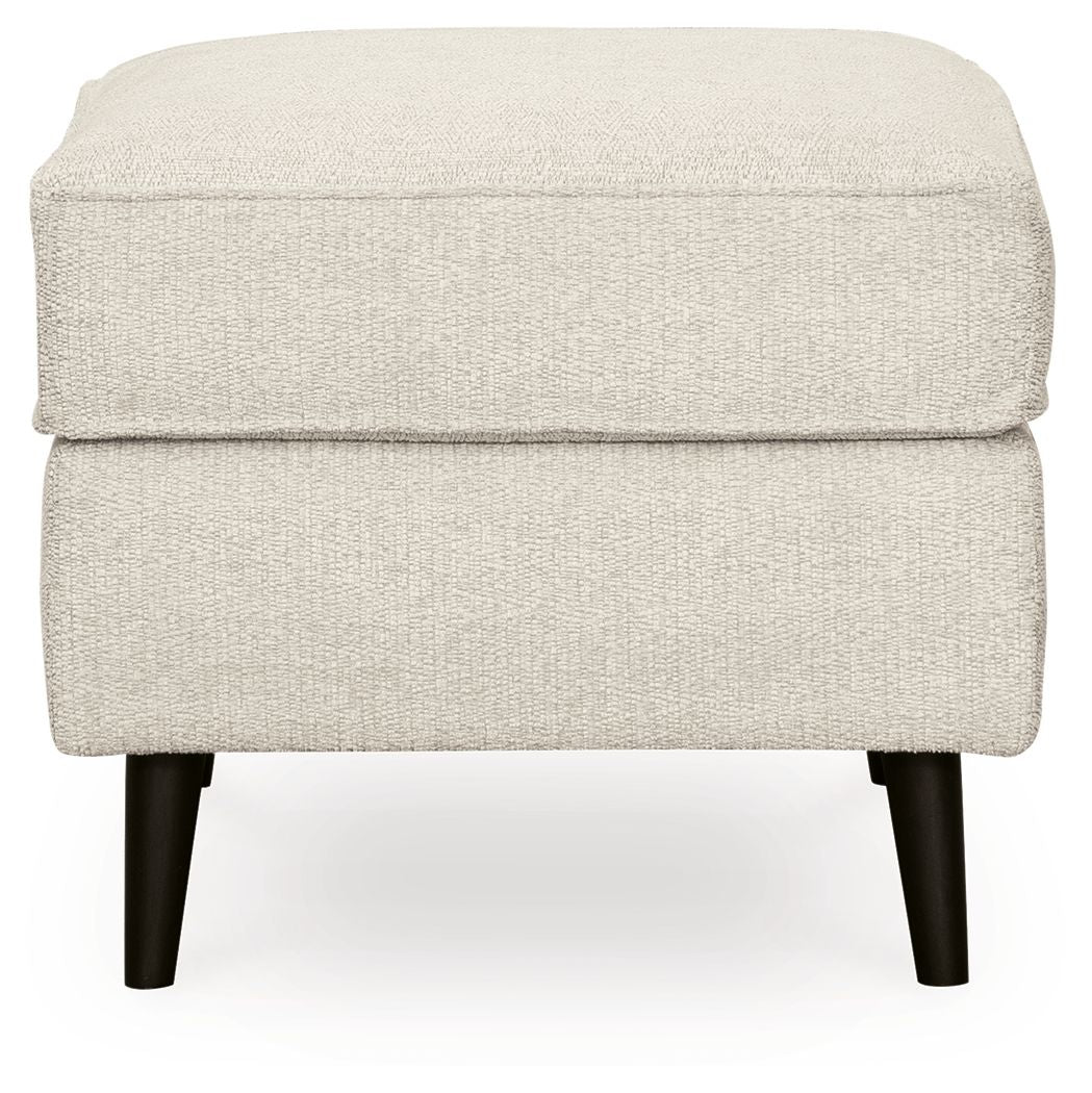 This designer ottoman is mid-century revival done to perfection. Linear and minimalistic, the beautifully edited profile includes tapered legs for a signature retro aesthetic. So casually cool, the caramel faux leather upholstery brings the look right into the present.