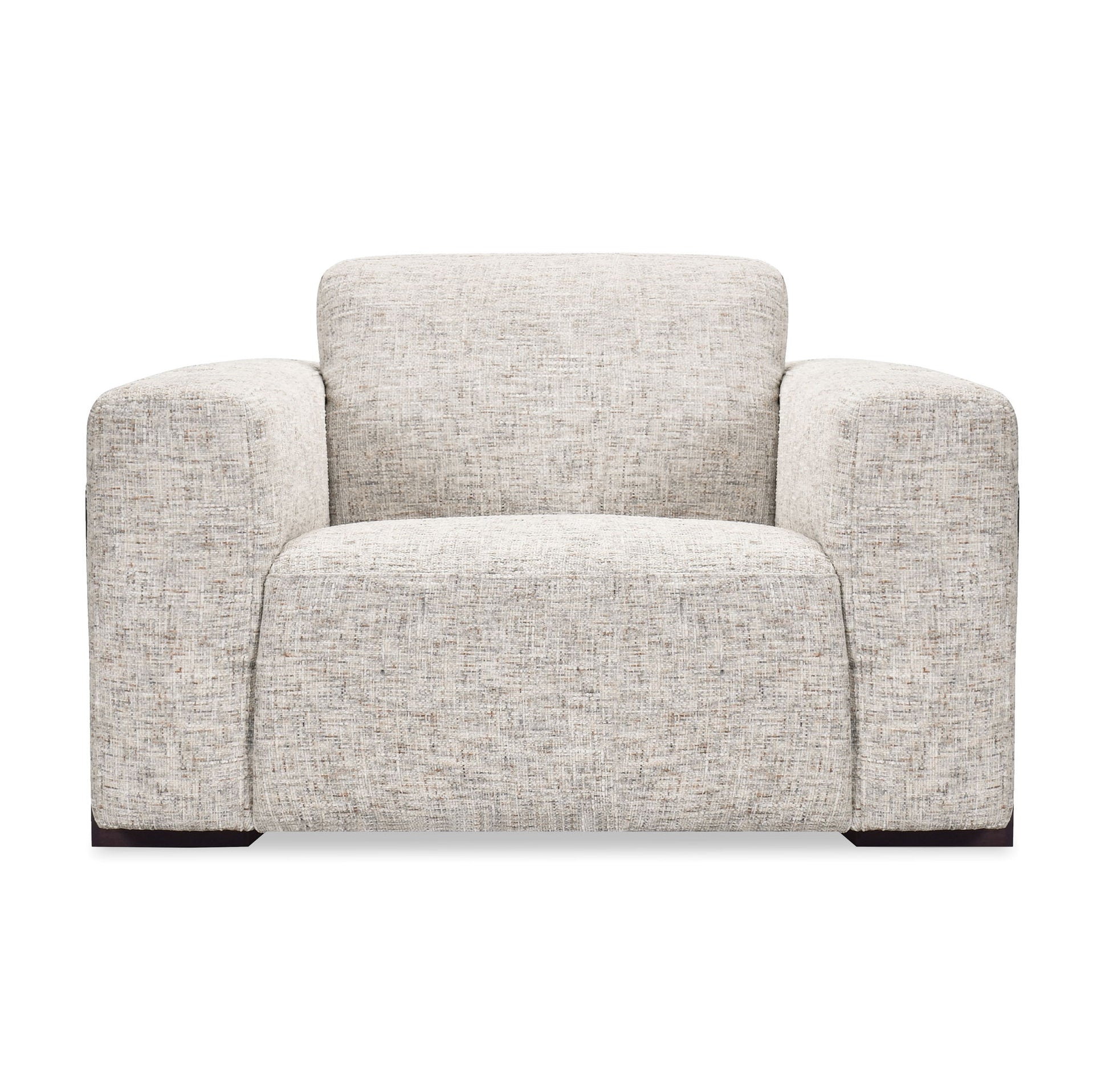 Relax in style with the Atlas Power Recliner with Power Headrest. This modern recliner features sleek lines, widescale track arms, and luxurious chenille yarns in a soft, low-pile weave. The power recline and power headrest provide customizable comfort, while the ebony wood banding adds an elegant contrast to the lighter-toned Odyssey Frost fabric. Designed for ultimate comfort and visual appeal, this recliner is perfect for any contemporary living space.