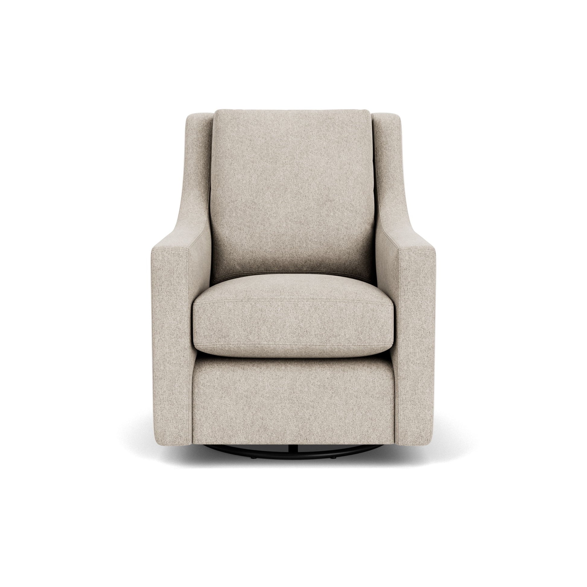 A contemporary style with enveloping comfort. Murph's curved arms slope down into the seat cushion, inviting you to do the same. Soft cushions and subtle pillow padding on the arms provide tremendous comfort, and a swivel mechanism is sure to quickly make Murph your new favorite seat in the house.