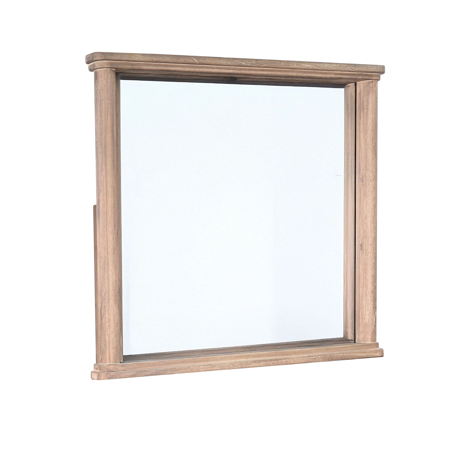 Bring a touch of warmth and refinement to your space with this Transitional Natural Wood Dresser Mirror. Framed in a soft, sun-washed wood finish with subtly rounded corners and clean lines, this mirror offers timeless appeal that pairs perfectly with matching dressers or stands out on its own. Ideal for bedrooms or entryways, it reflects light beautifully while adding depth and elegance to your room.