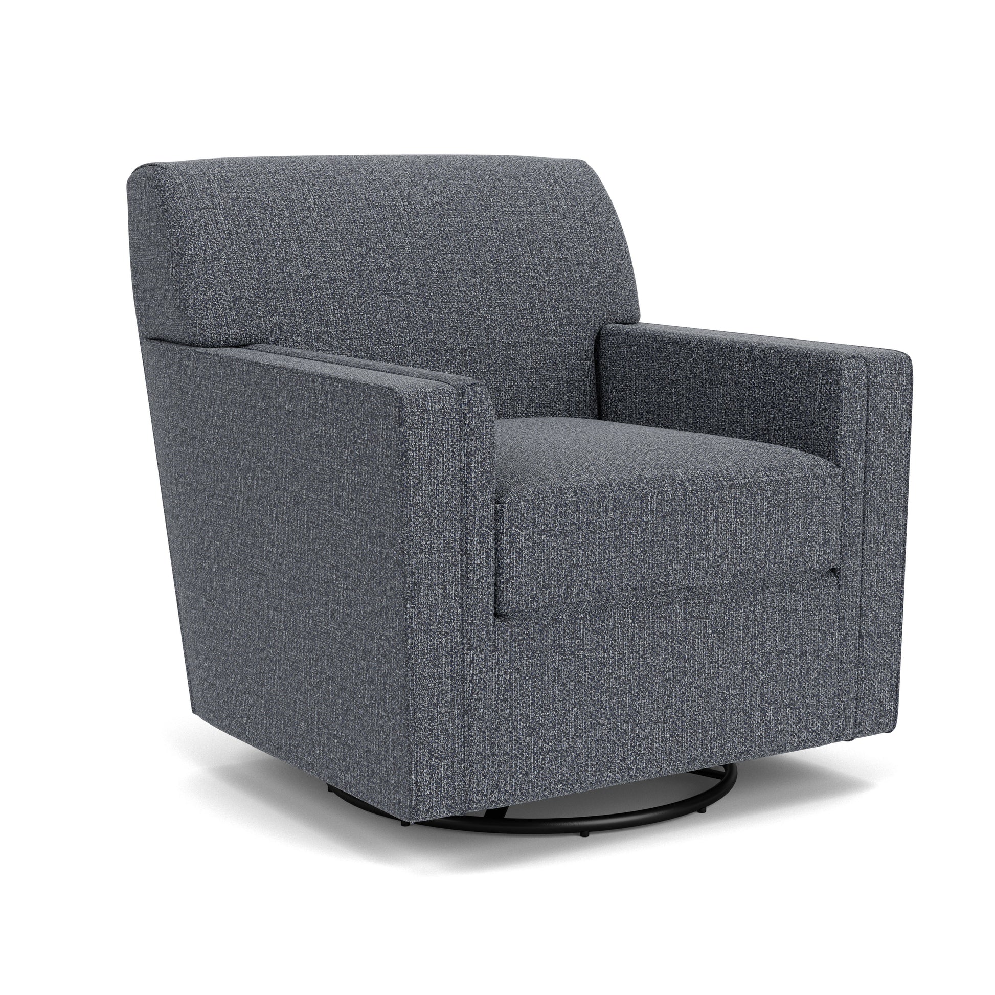 Relax in a perfectly proportioned chair that balances simple sophistication with lasting comfort. A tight back and soft, reversible box seat cushions provide firm yet comfortable support, while a swivel base allows the chair to turn a full 360 degrees. Simple, clean lines and refined welt detailing offer a clean and tailored silhouette for any size living space.