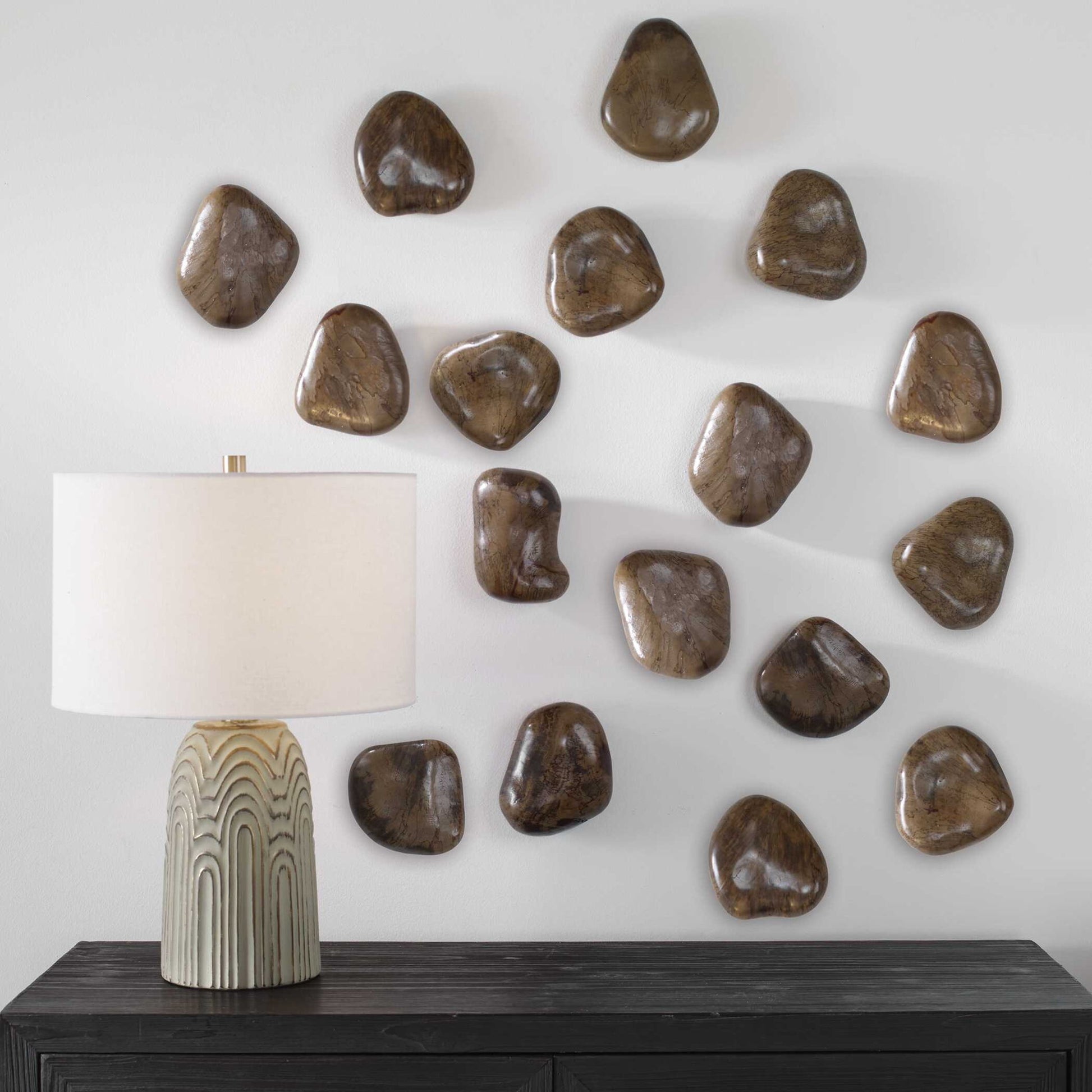 Bringing The Elements Of Nature Indoors, These Fun Wall Pebbles Feature Solid Tamarind Wood With Natural Spalting Details Finished In Rich Walnut Brown. Solid Wood Will Continue To Move With Temperature And Humidity Changes, Which Can Result In Small Cracks And Uneven Surfaces, Adding To Its Authenticity And Character. Sizes And Grain Pattern May Vary Due To The Authentic Nature.