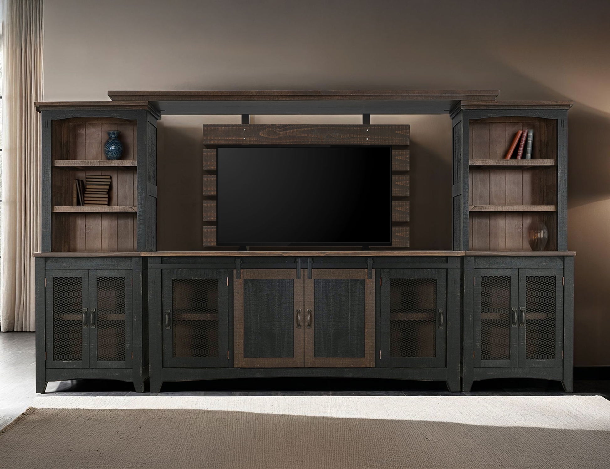 Universal Pier. Introducing our Pueblo collection, crafted from solid pine wood. This rustic collection is the perfect addition to bring your dream space to life. It features a hand-distressed finish in black and brown on the tops.
