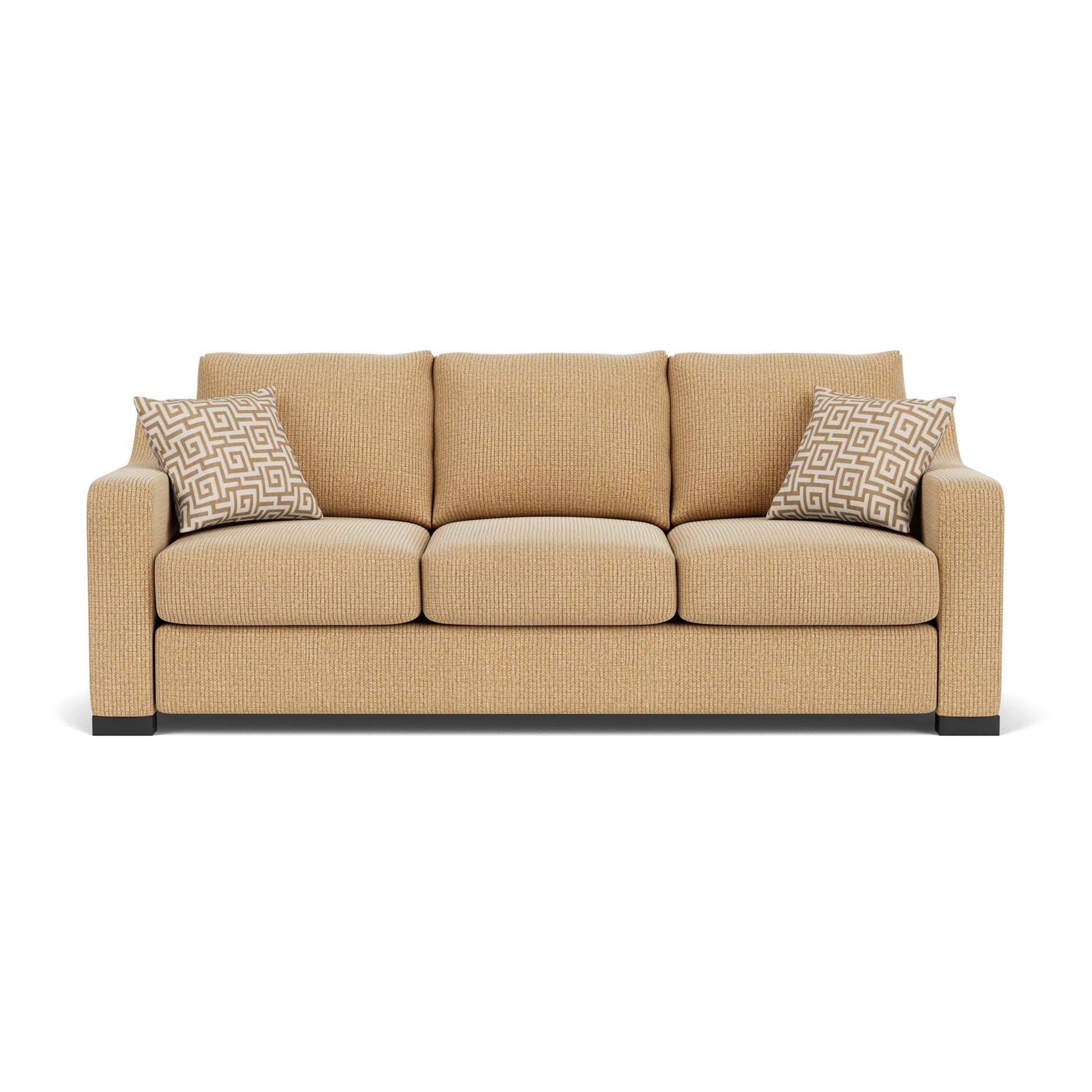 Cozy and casual yet stylishly relevant, the Quinn sofa exudes an effortless vibe that harmonizes with any decor. Gently sloping track arms sit atop black recessed legs to make a statement. Two accent pillows add flair, while plush, sink-in cushions ensure that comfort never gets compromised. Create the perfect, relaxed look for your living space with your choice of upholstery fabrics, including performance and sustainable options.