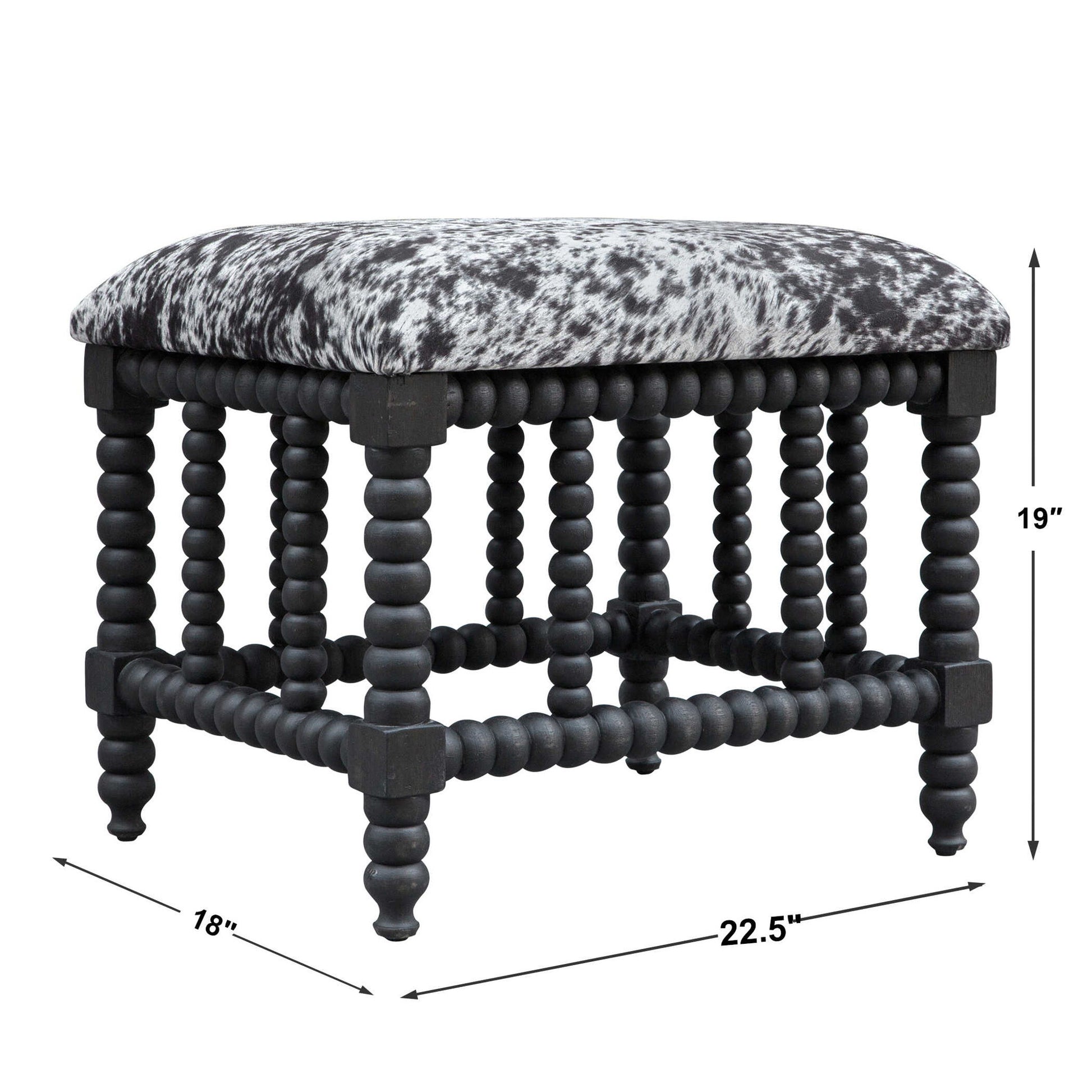 Ranch And Modern Lodge Styles Converge To Create This Plush, Upholstered Bench. The Cushioned Seat Is Wrapped In A Charcoal Gray And White Faux Cow Hide, Accented By A Matte Black Stained Base Turned From Solid Plantation-grown Mahogany Wood.