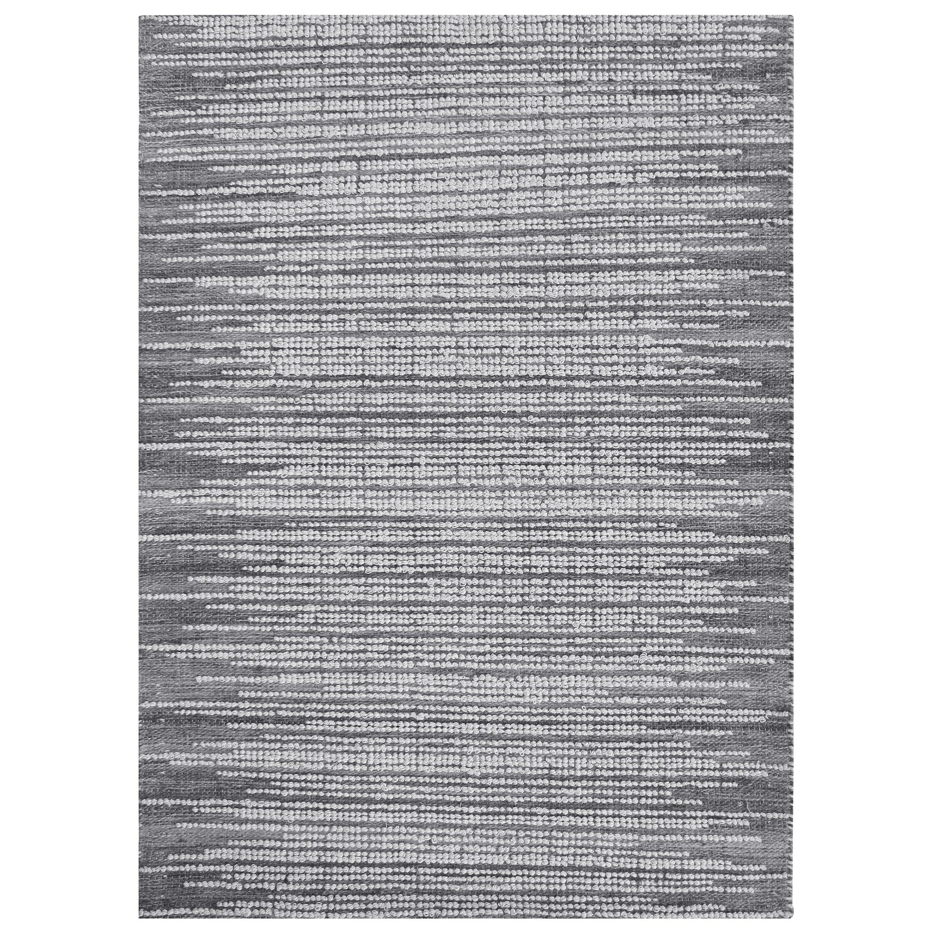 This Hand Woven Rug Features Natural Undyed Gray Wool With Looped Ivory Raised Details.