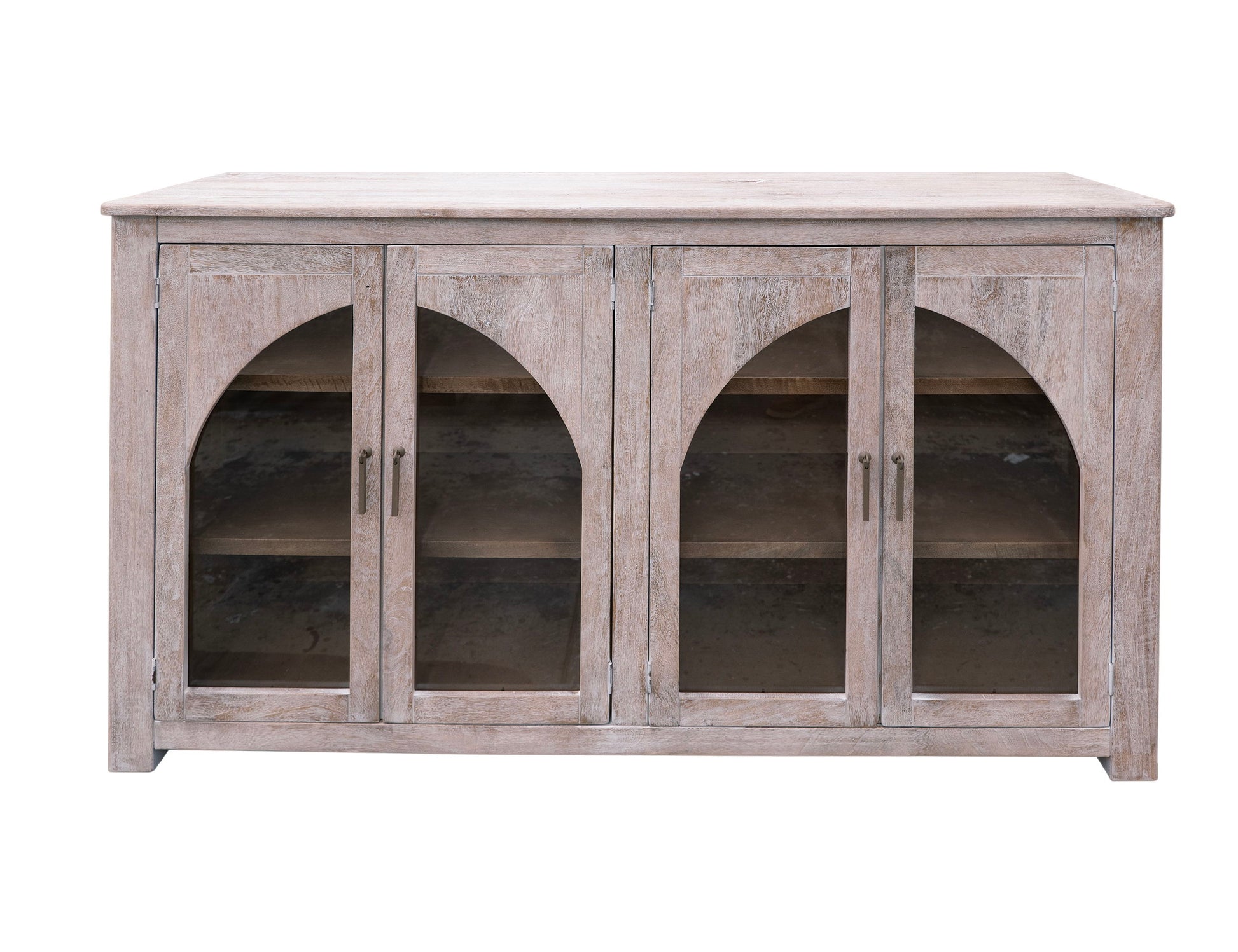 4 Door Console. Step into the coastal charm of the Santa Monica Collection, a testament to the beauty of artisanal craftsmanship and timeless design. Crafted with care from mango wood and finished in sand drift tones, each piece in this collection embodies the essence of laid-back luxury, evoking the sun-drenched shores and breezy elegance of its namesake.
