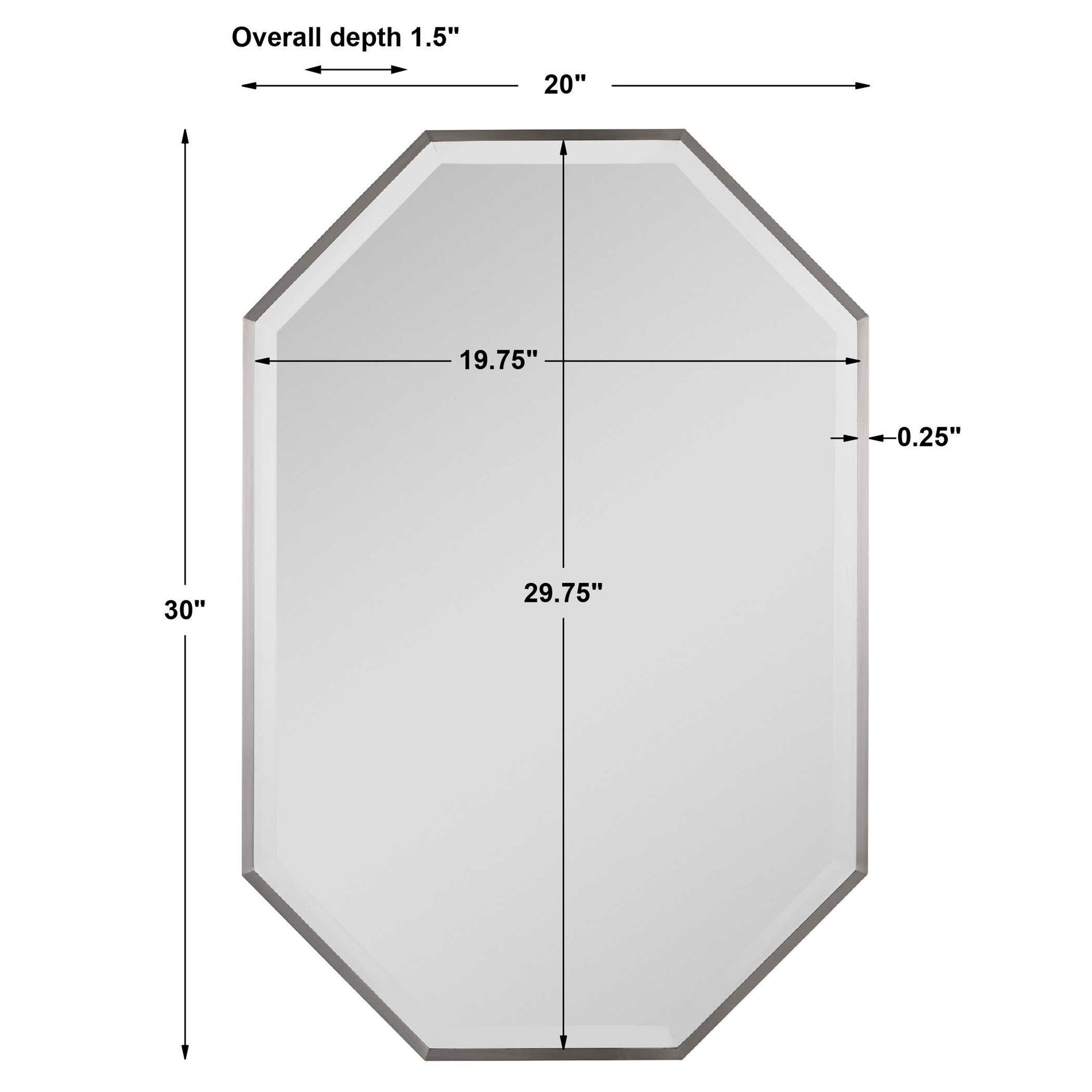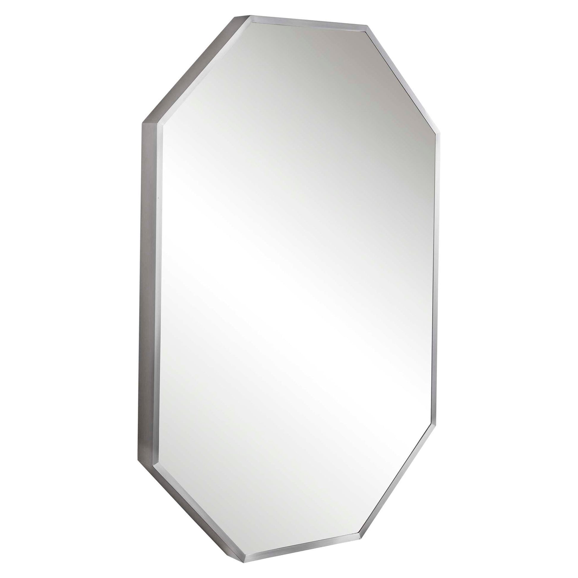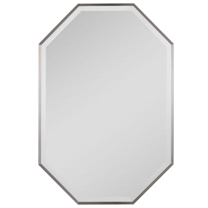 This Traditional Style Vanity Mirror Takes On A More Updated Sleek Look Featuring A Simple Octagon Shape With A Petite Stainless Steel Frame Finished In Brushed Nickel And A 1" Bevel. May Be Hung Horizontal Or Vertical.