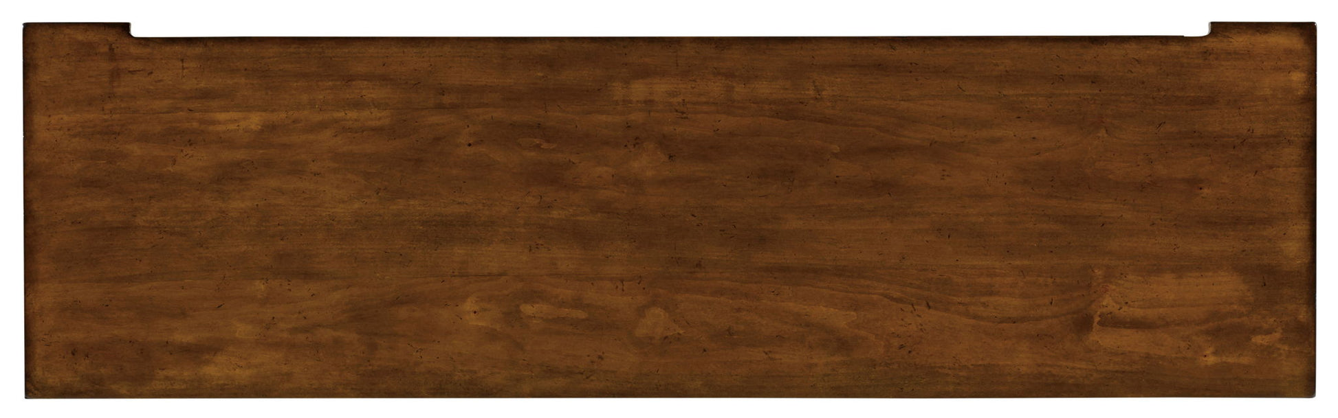 Inspired by the manor homes and equestrian life of the English countryside, the signature Tynecastle Buffet combines classic Georgian architectural details with more rustic timber-frame elements for a Hunt Country ambience. The warm, chestnut-colored rustic finish over figured Alder veneers creates a canvas of comfort and classic appeal. The six doors have vintage seeded glass and 2 adjustable wood shelves behind each door. Three felt-lined drawers, and the center drawer has a silverware tray. A total of six shelves for storage.