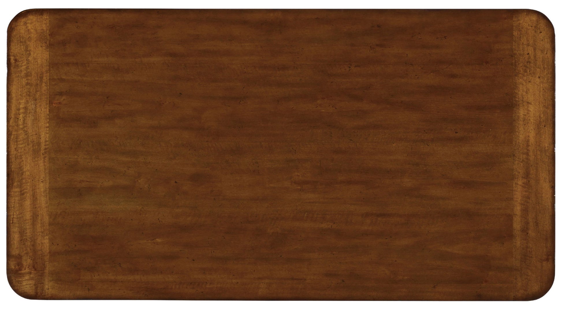 With a rustic equestrian flavor, The Tynecastle Writing Desk has a criss-crossed beam-like base reminiscent of rafters in a barn, elevated by chunky feet. Crafted of Poplar Solids and Figured Alder Veneers, the desk is finished in a warm chestnut color. A center drawer with drop-front allows for keyboard use. Two utility drawers with 3 slots and 2 removable dividers in each drawer. One writing slide and one pencil tray for use in either drawer.