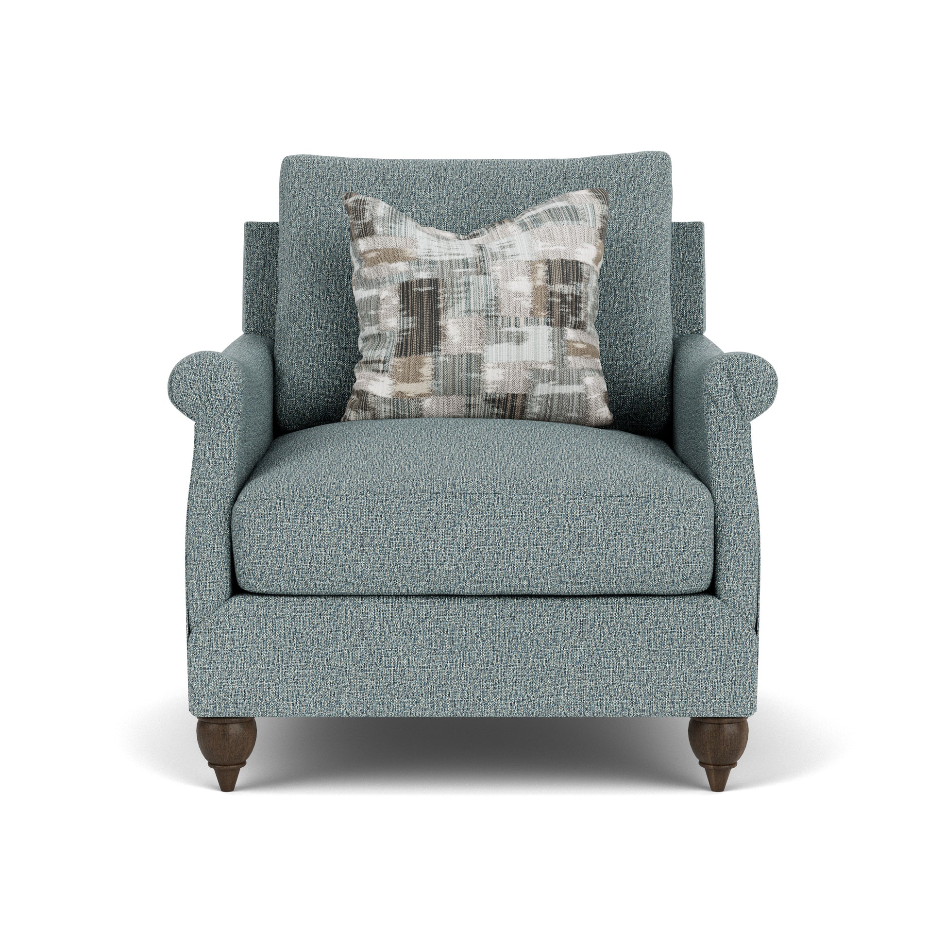Traditional elegance gets a fresh reinterpretation with the Veda chair. The petite, pleated roll arms slope down onto stately legs, delivering timeless details and graceful curves that soften the room while adding an abundance of charm. Generous seat space, cushion fill choices, and the Blue Steel Spring at the heart of the seat ensure lasting comfort. And bring your room together with an accent pillow, orderable in your choice of fabric.