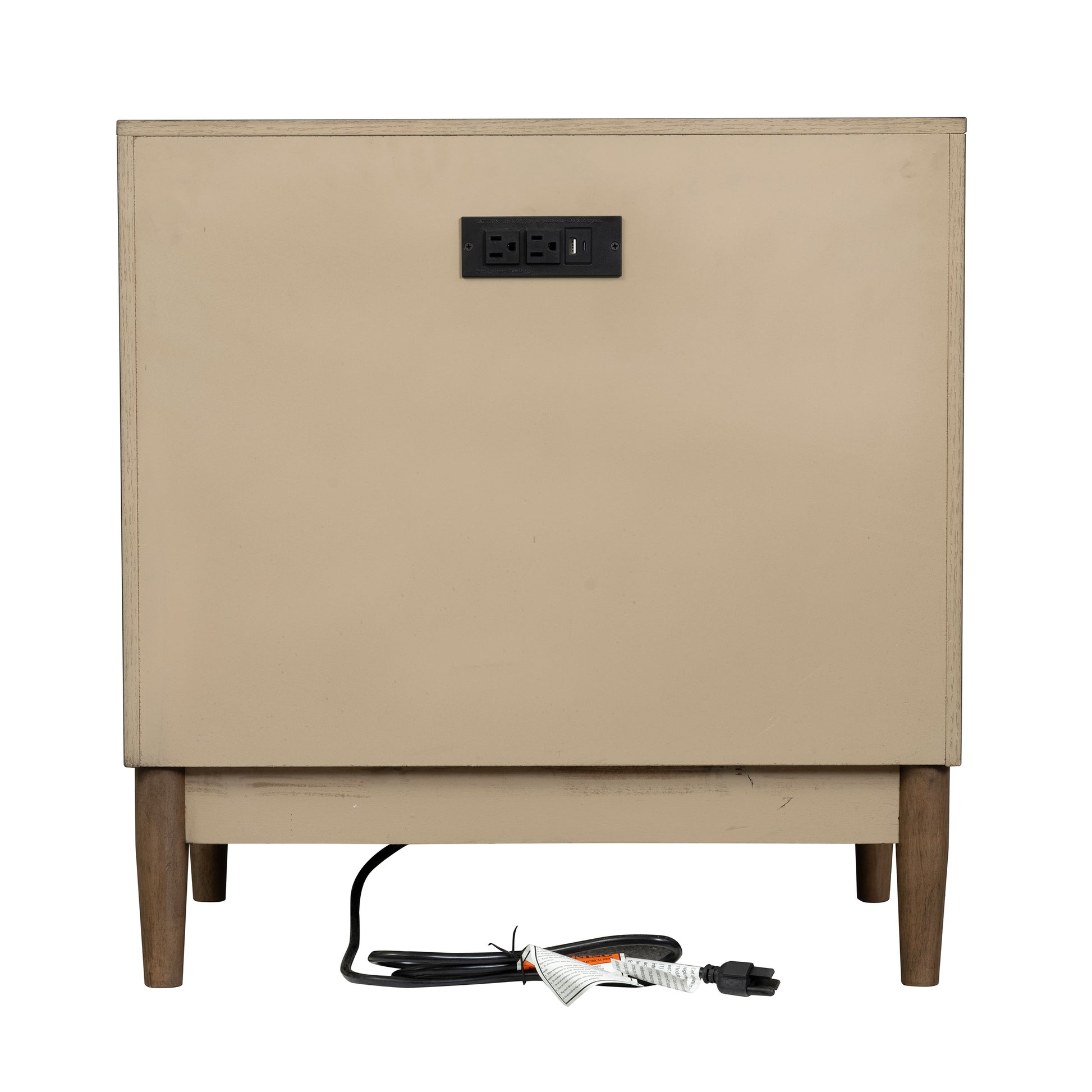 - Includes a duplex electrical outlet on the back side, with a USB-A and USB-C port for charging devices