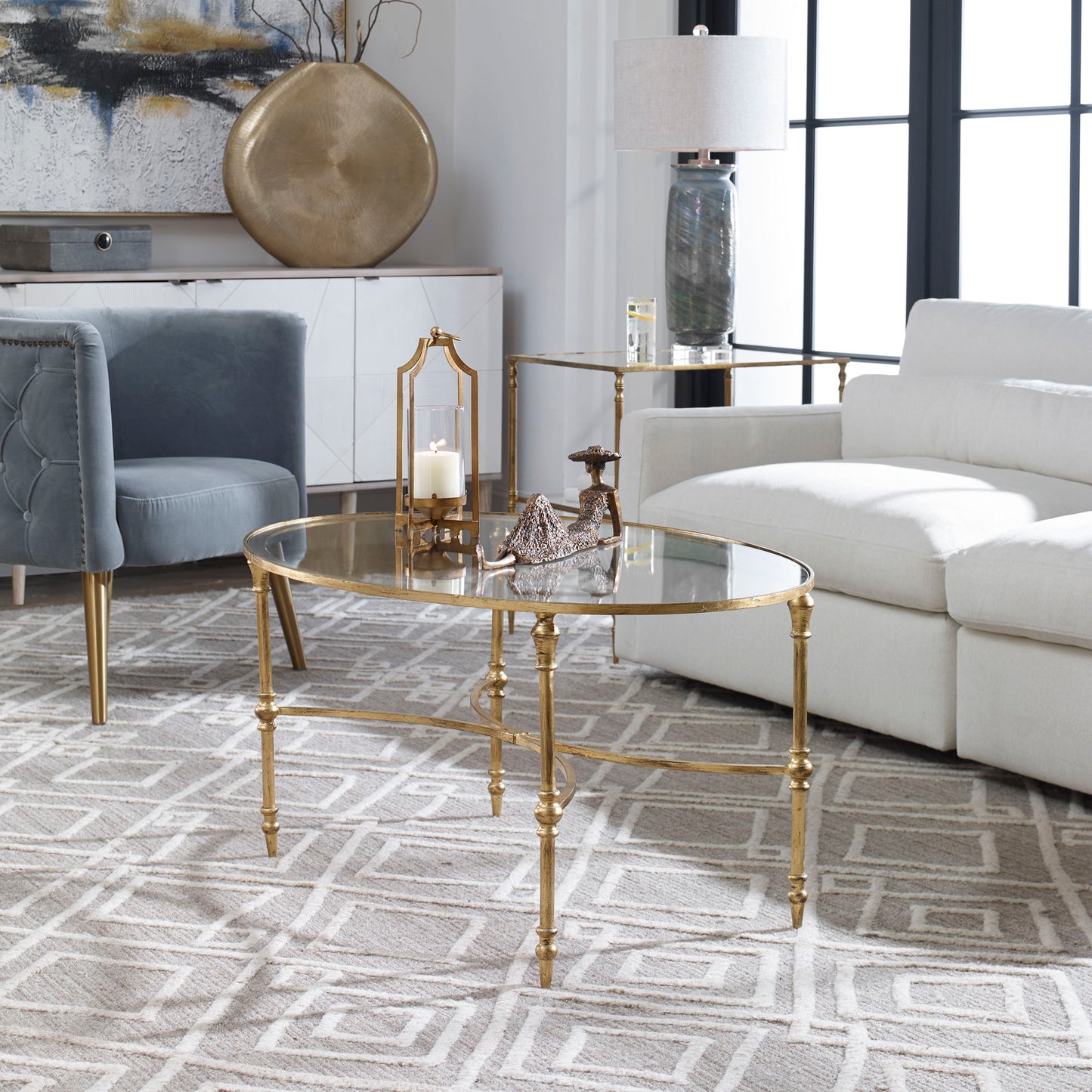 A Graceful, Oval Design Finished In Antiqued Gold Leaf Under Sturdy, Clear Tempered Glass.