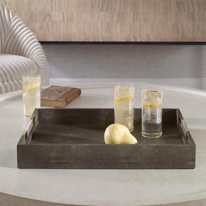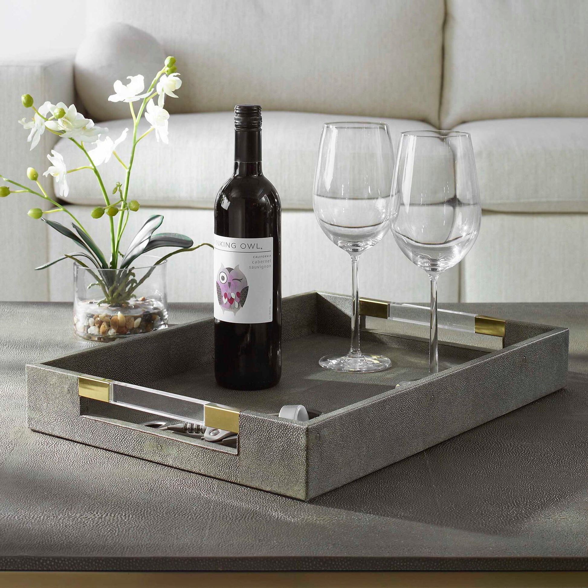 Tray Is Covered In An Elegant Gray Faux Shagreen With Clear Acrylic Handles And Aged Gold Accents.