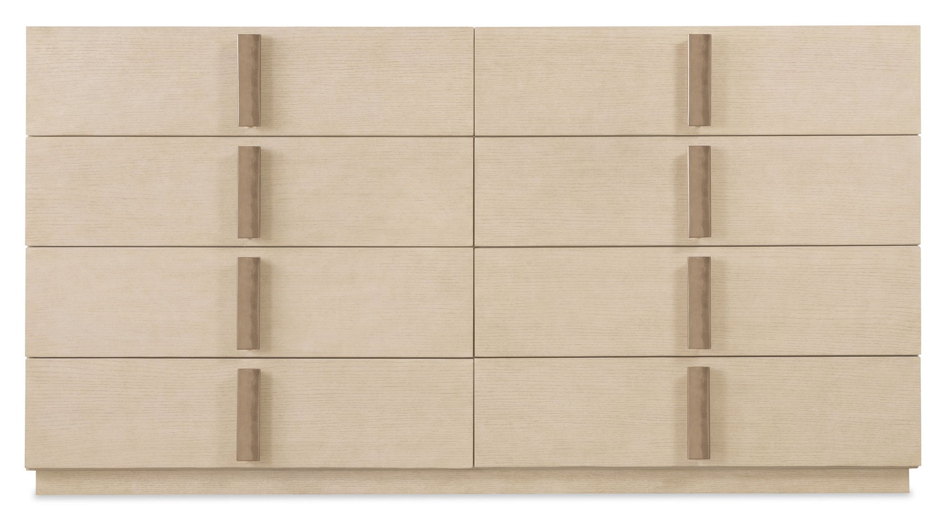 Enhance your bedroom’s aesthetic with the Westwood Dresser. Crafted from quartered oak veneers with a finish, this dresser features spacious drawers, cedar-lined bottom drawers, and custom bar hardware with a plated finish. Its modern design, complete with tapered legs and durable construction, makes it a versatile piece for contemporary bedrooms.