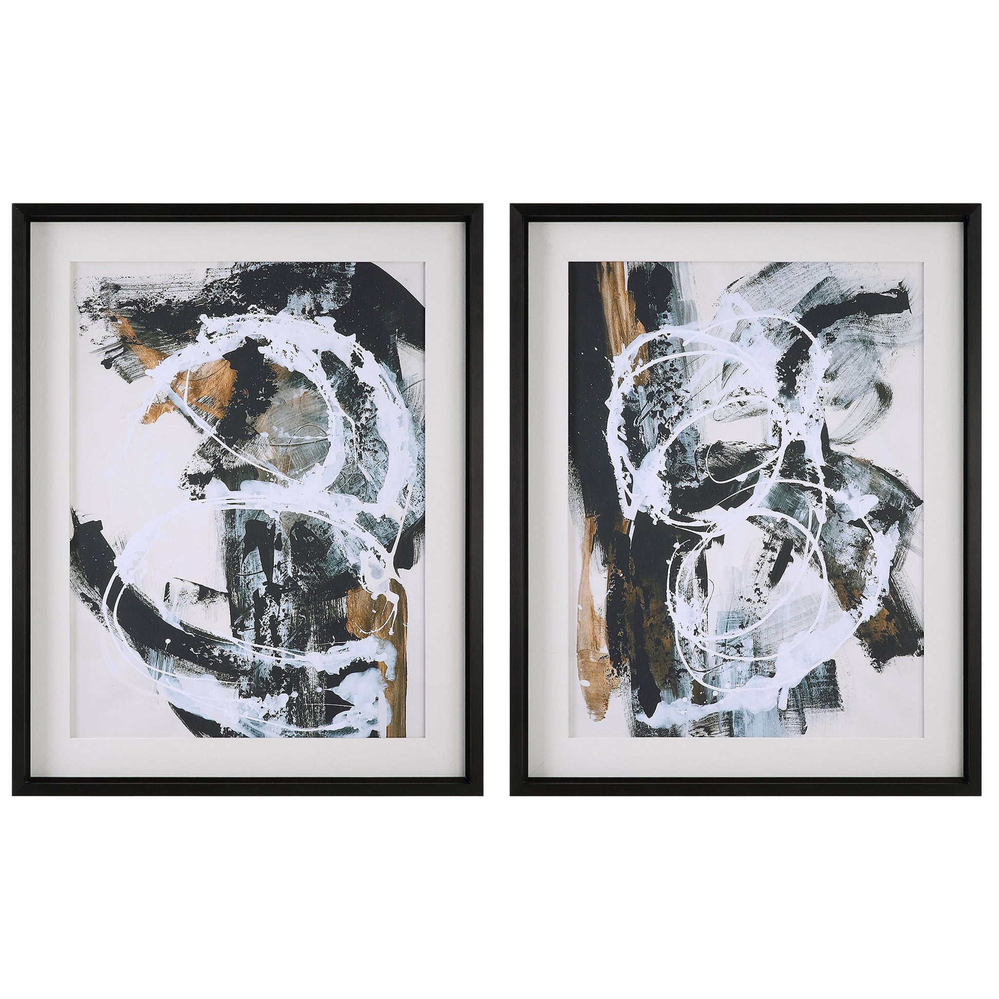 These Contemporary Compositions Feature A Unique Combination Of Warm Golden Ochre, Deep Charcoal, And White Tones. Accented By Satin Black Pine Wood Frames And A Natural Linen Wrapped Mat. May Be Hung Horizontal Or Vertical. Printed On Paper With Special Matte Finish. Artwork By Joyce Combs.