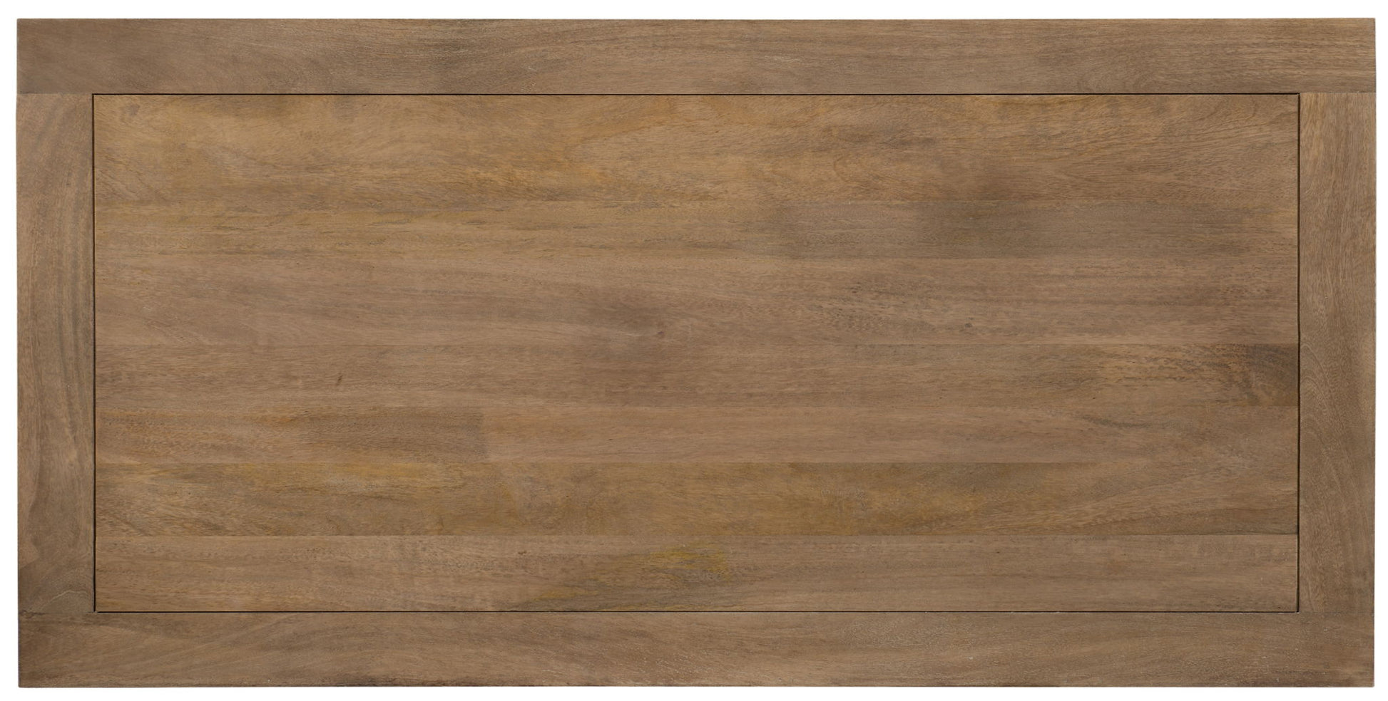 Industrial style meets craftsman design in this writing desk constructed of Mango Wood with iron accents and a gray metal frame and diagonal stretchers. The desk features 3 drawers, a center drawer with a drop-front, 2 utility drawers with one removable pencil tray and a writing insert for use in either drawer. Both drawers have 3 removable dividers.