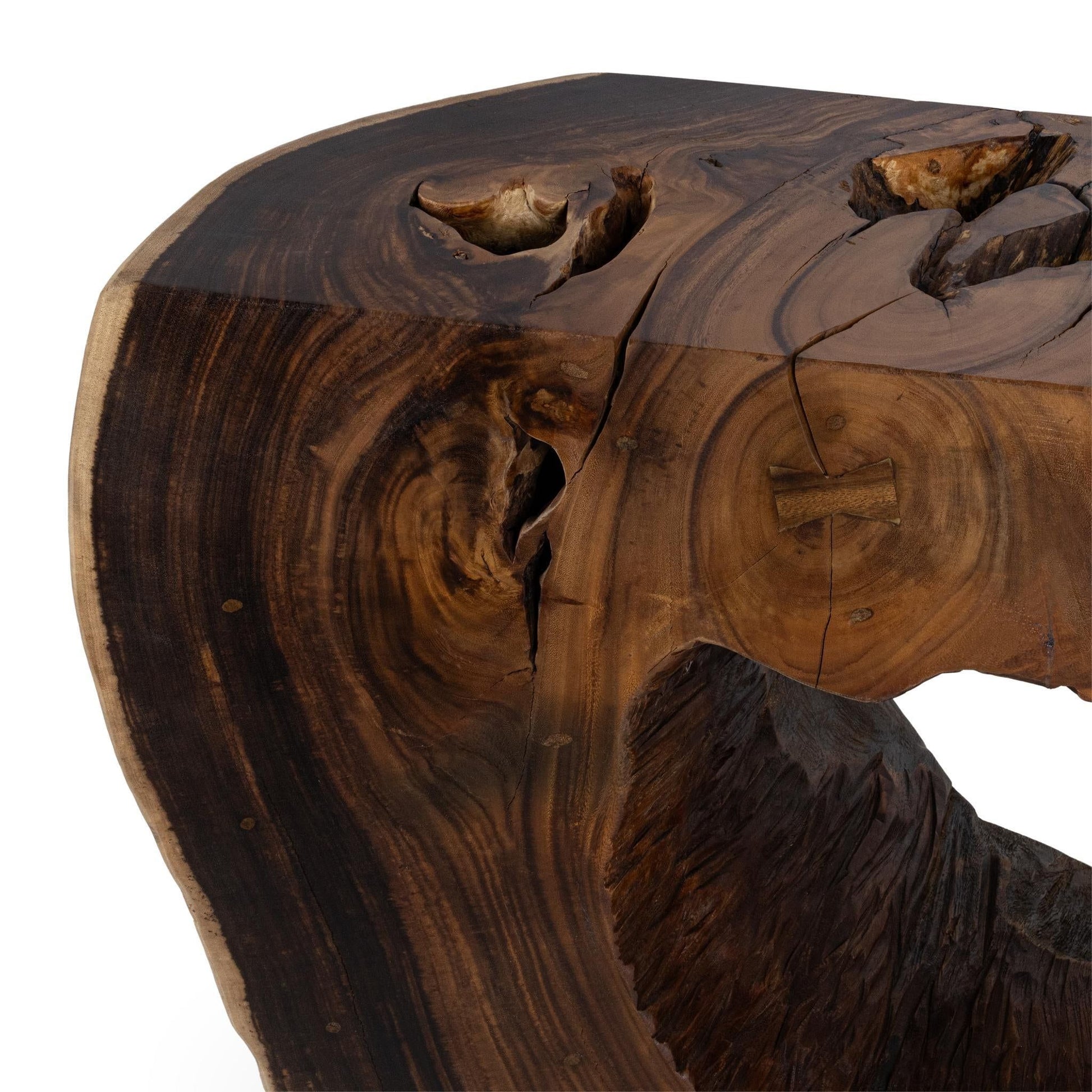 This organic console table showcases natural artistry with its organic hollow design and rich wood grain. Handcrafted from solid Suar Wood, each piece is unique, highlighting warm tones, natural textures, and rustic charm. Perfect for entryways, living rooms, or hallways, this versatile console table doubles as a functional surface and a sculptural accent. Durable and eco-friendly, it’s ideal for modern, rustic, farmhouse, or bohemian décor, bringing timeless beauty and character to any home.